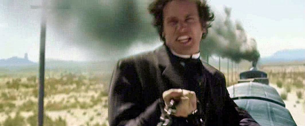 In a revision of the original story, Dan Reid's brother John is taken captive with Tonto on a train that's attacked by the Cavendish gang