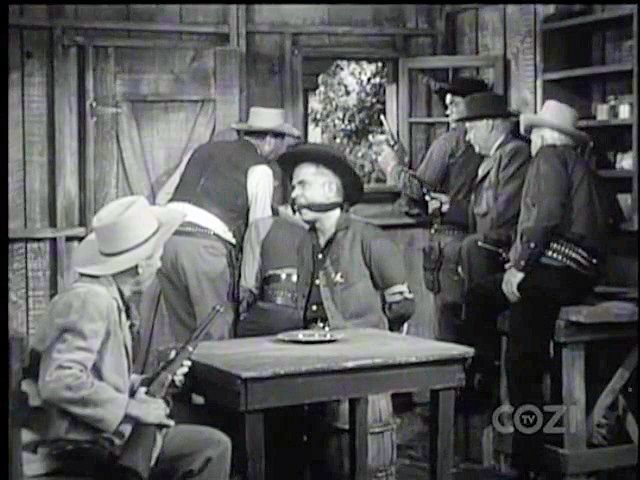 Outlaws controlling a town take the sheriff prisoner.