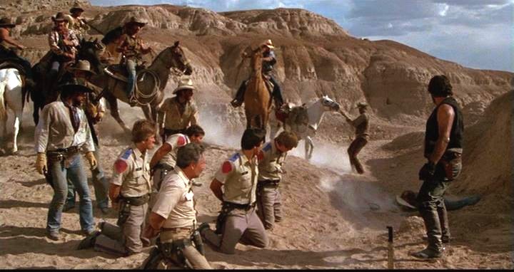 McQuade rescues a bunch of Texas Rangers who've been tied up by bandits.