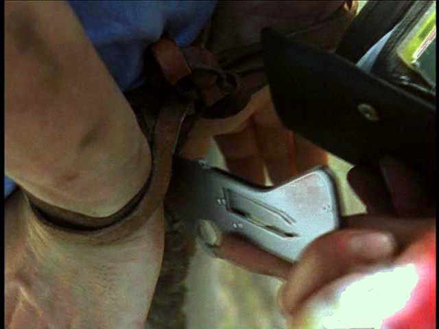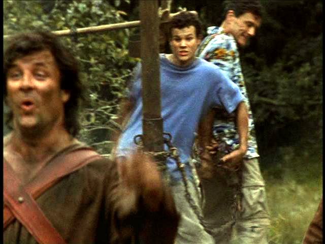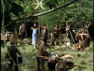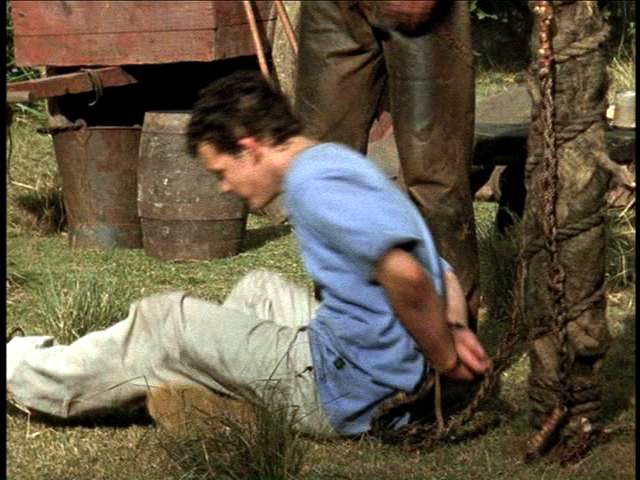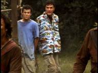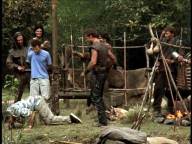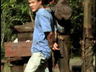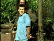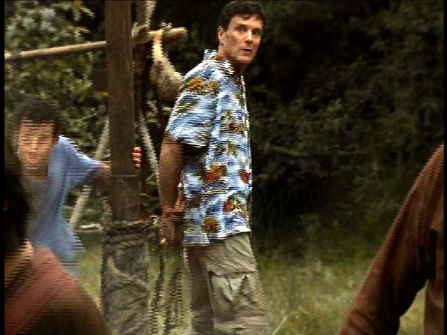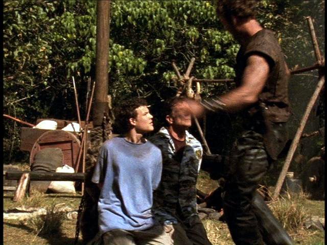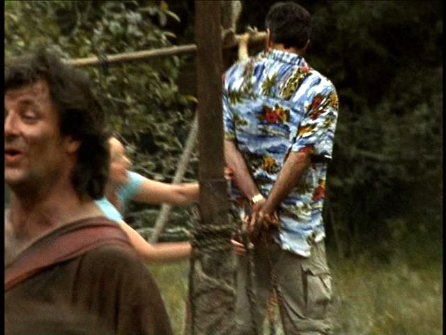 Some modern-day tourists are taken captive and tied up by a hostile tribe.