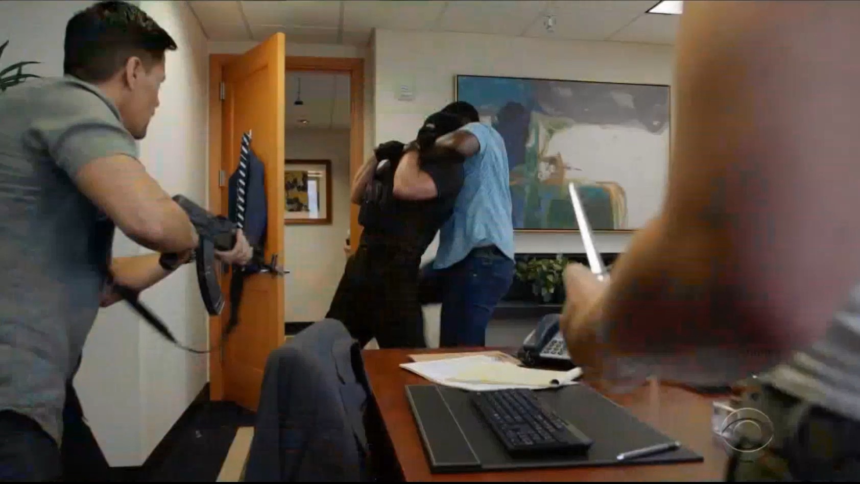 Magnum and T.C. take down a masked gunman.
