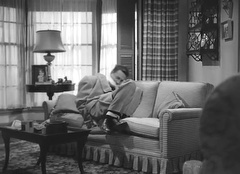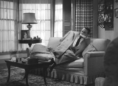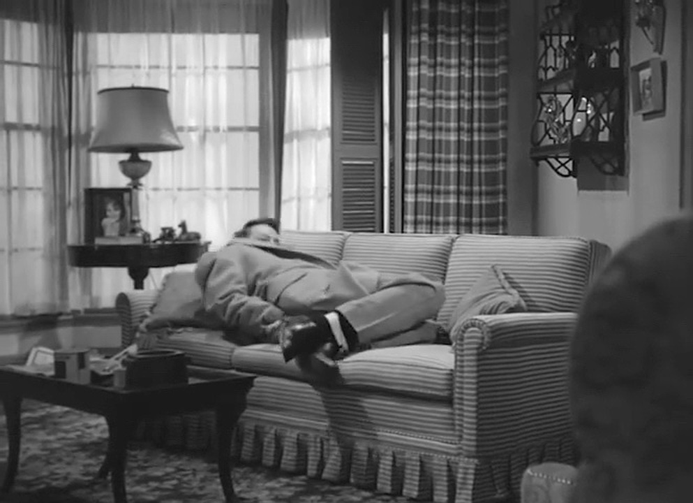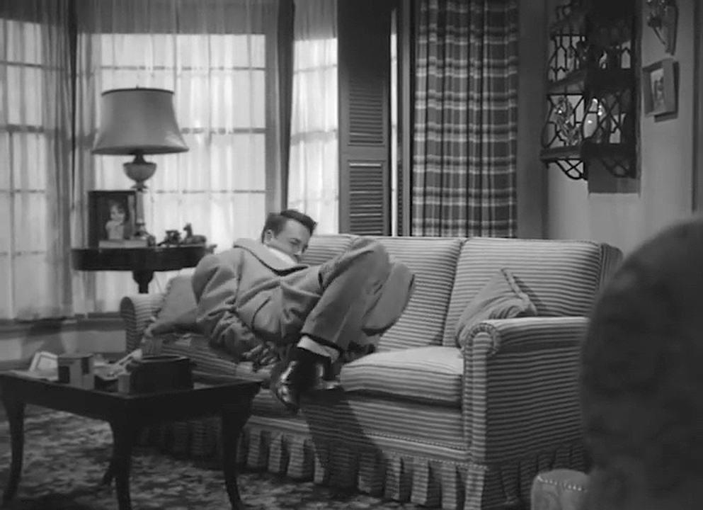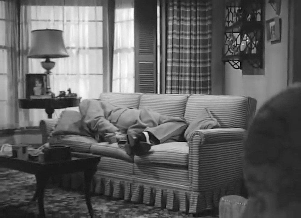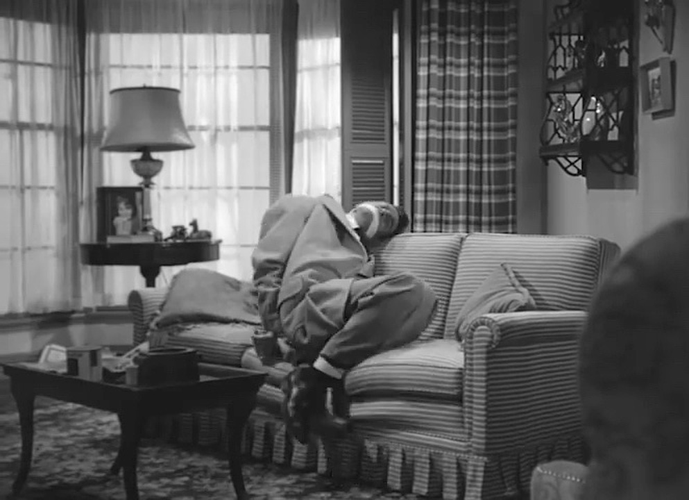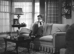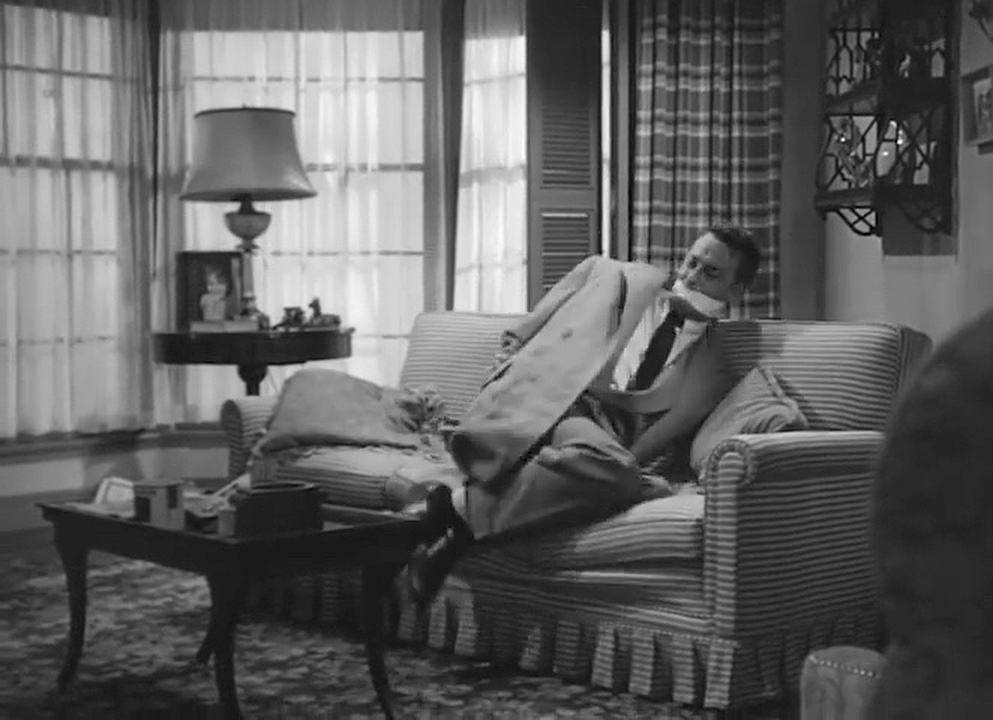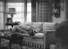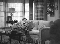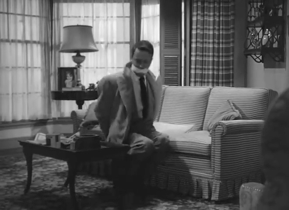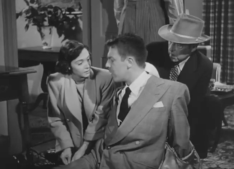A detective who's been hogtied and gagged by his brother tries unsuccessfully to answer the phone.