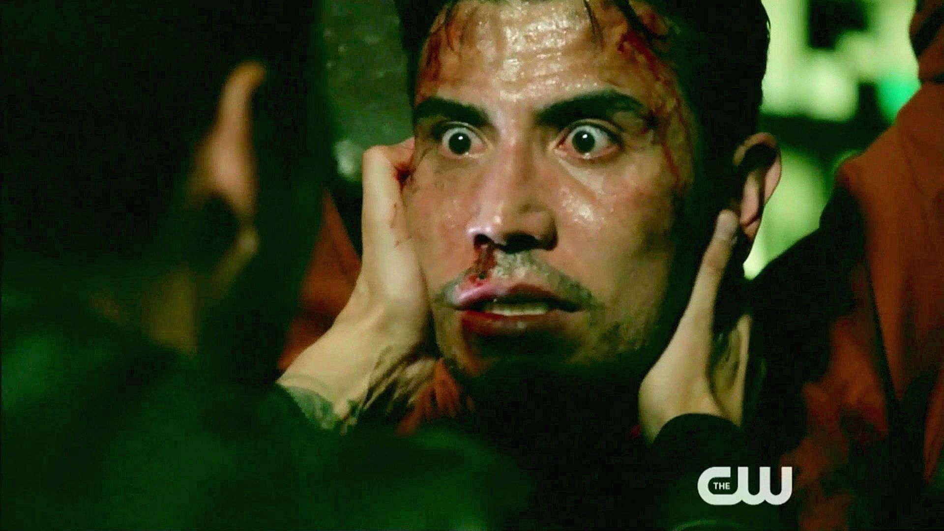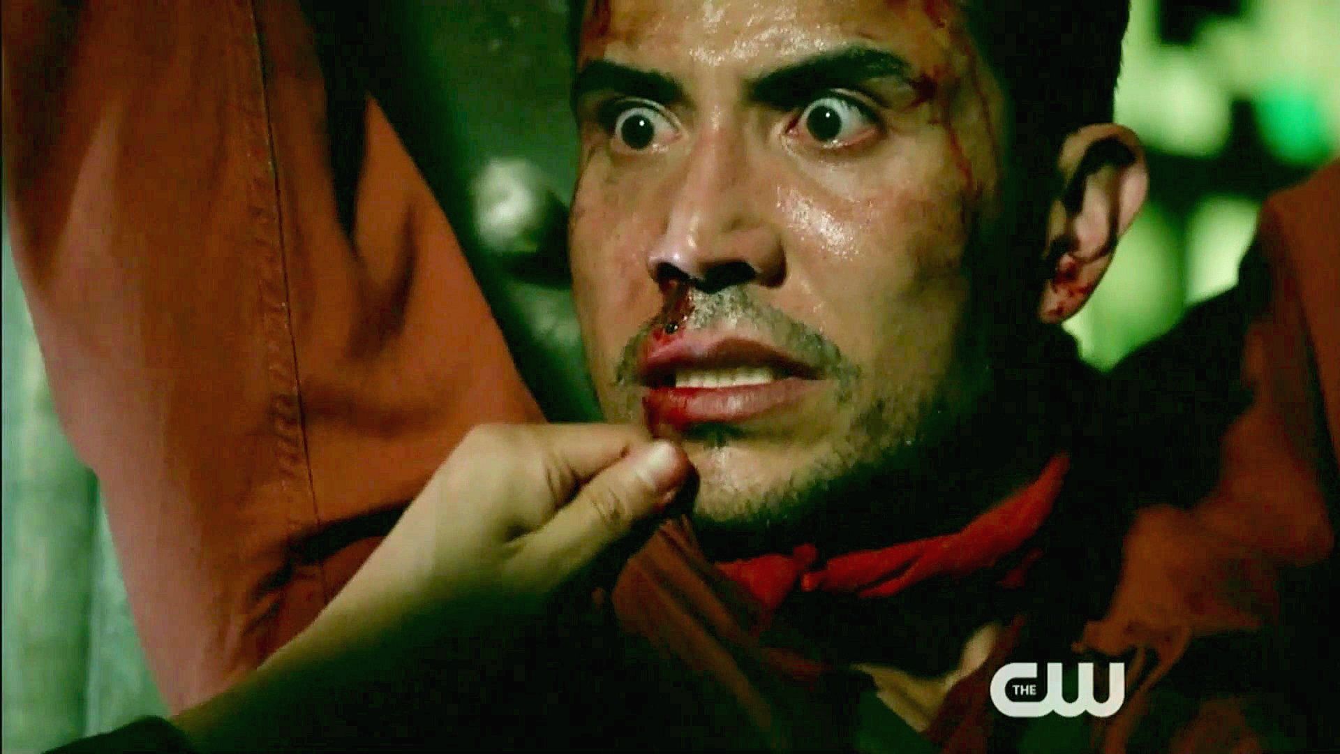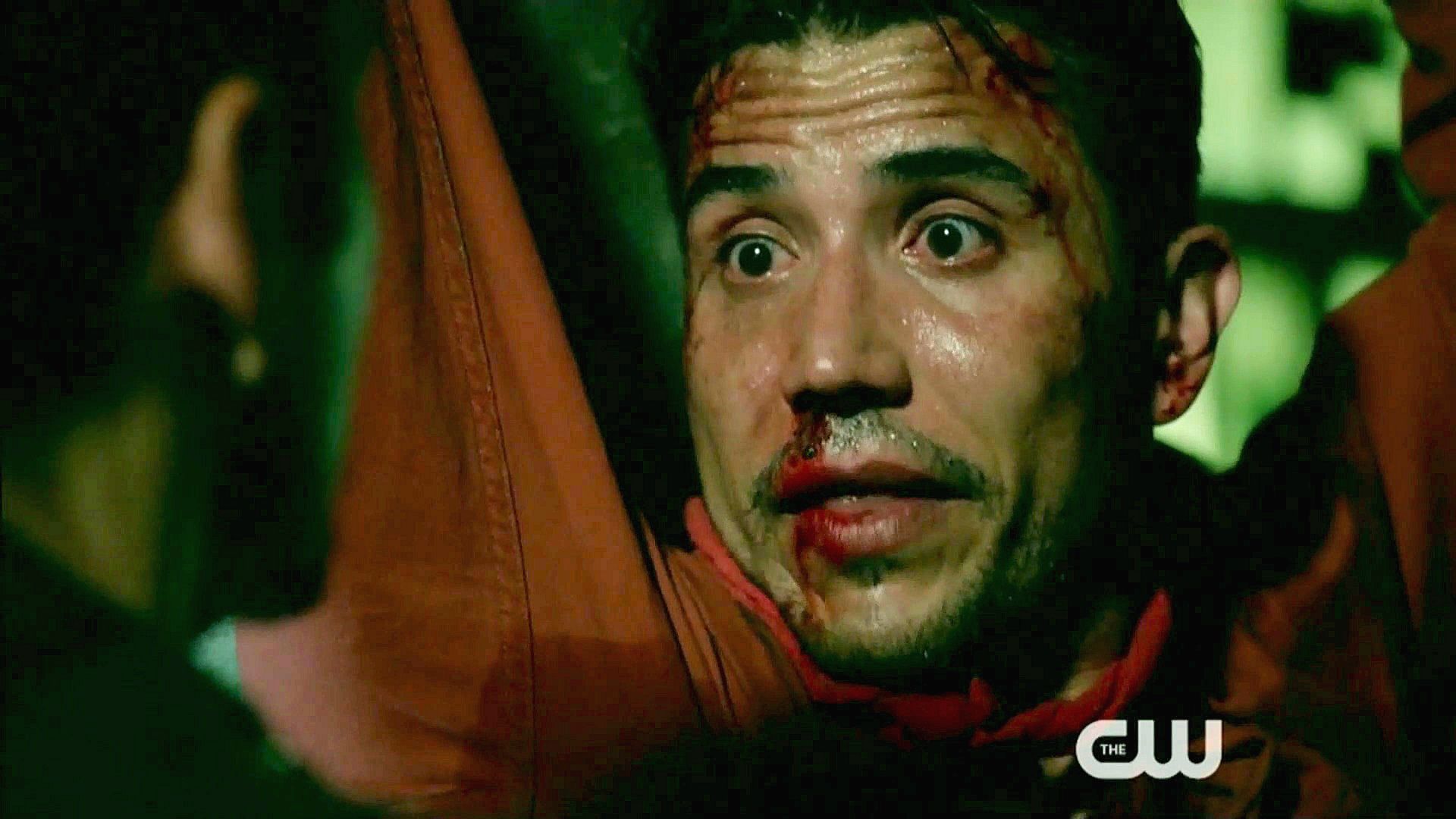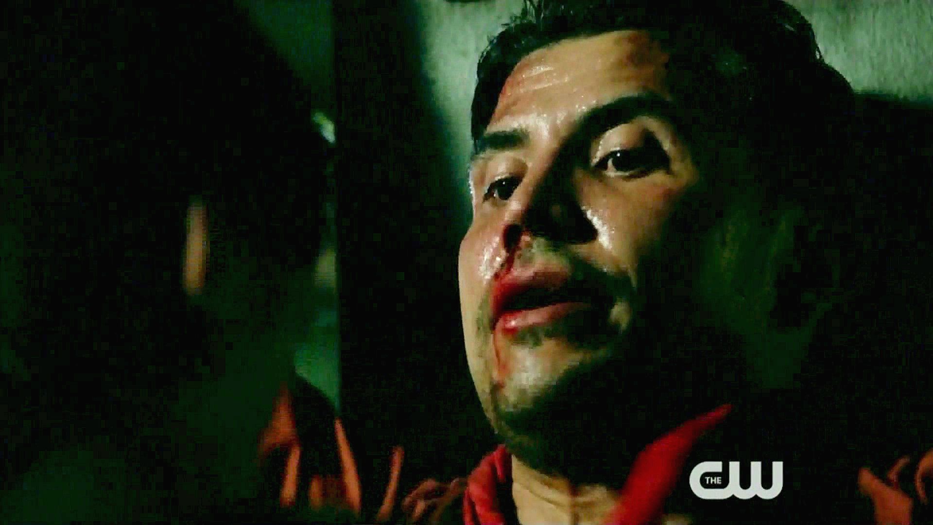Raul finds his brother Cesar in a warehouse with a bomb strapped to him.