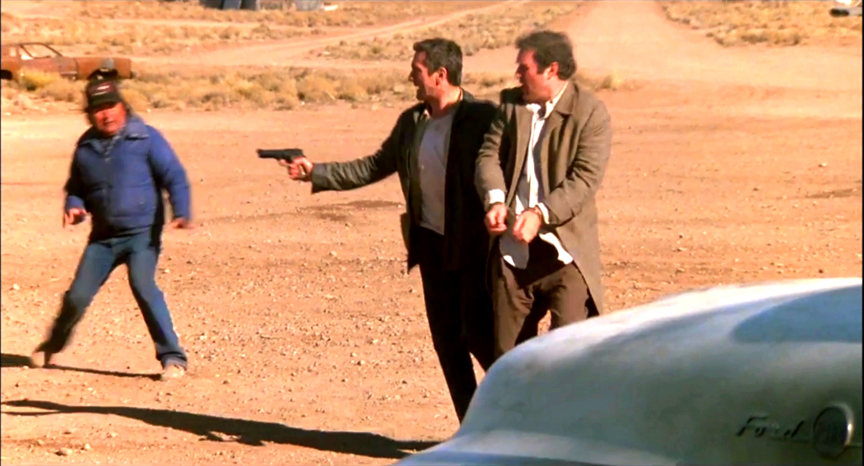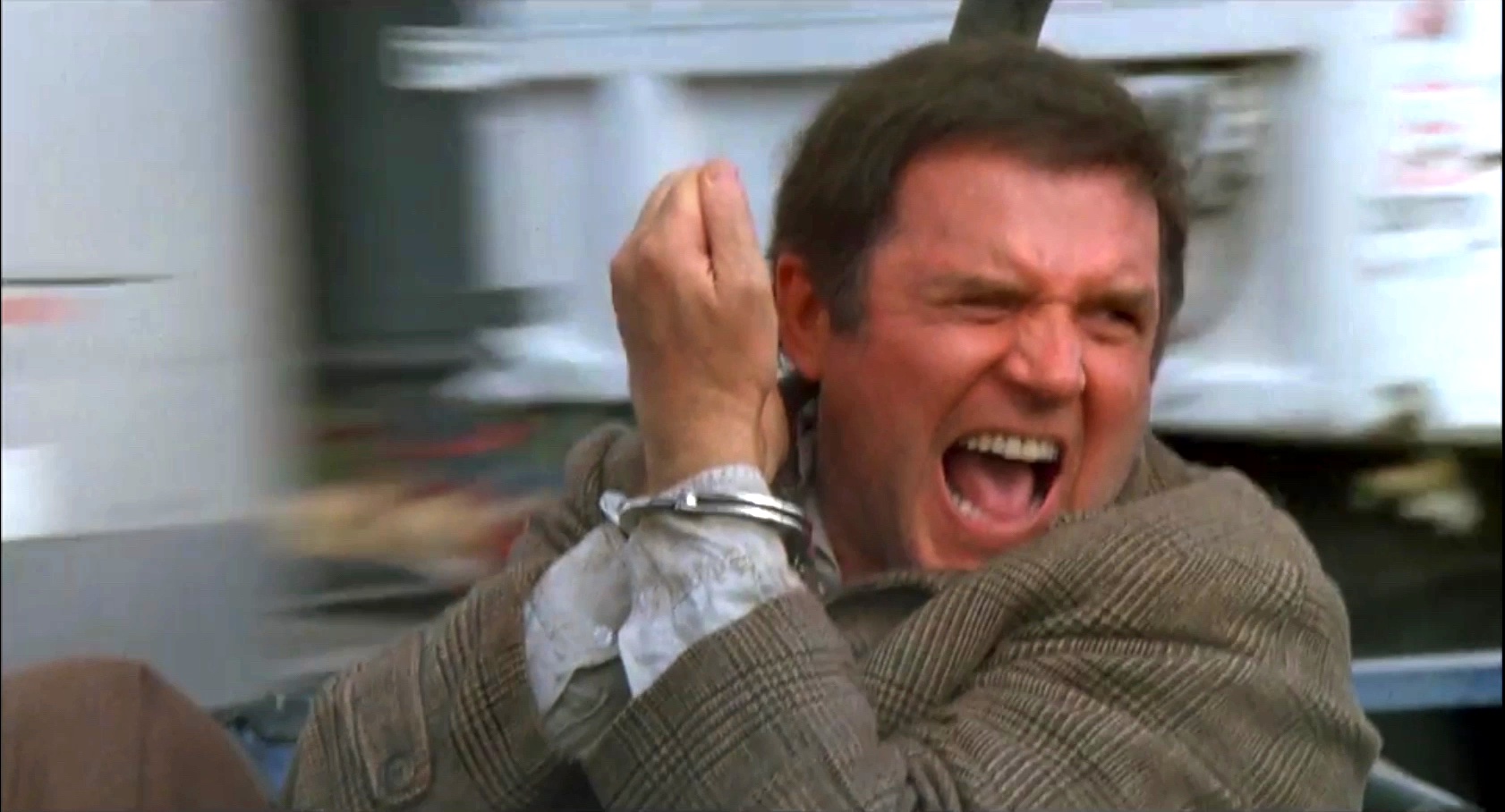 A bounty hunter keeps a fugitive accountant captive. In later interviews, Grodin said that he'd been offered rubber handcuffs to wear,