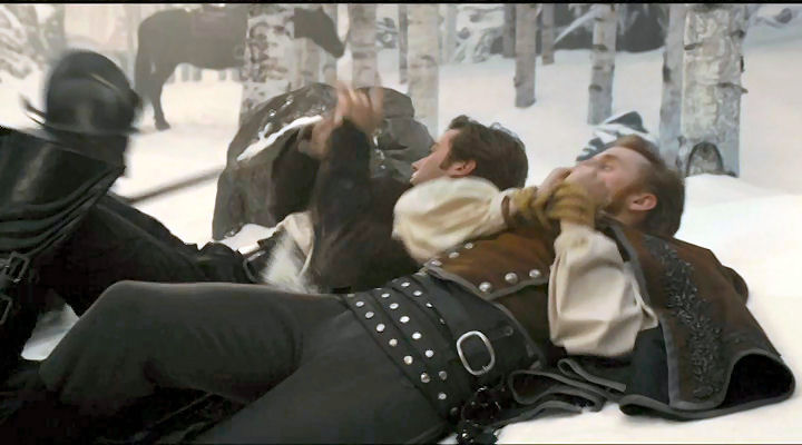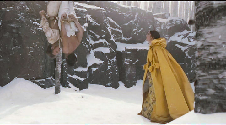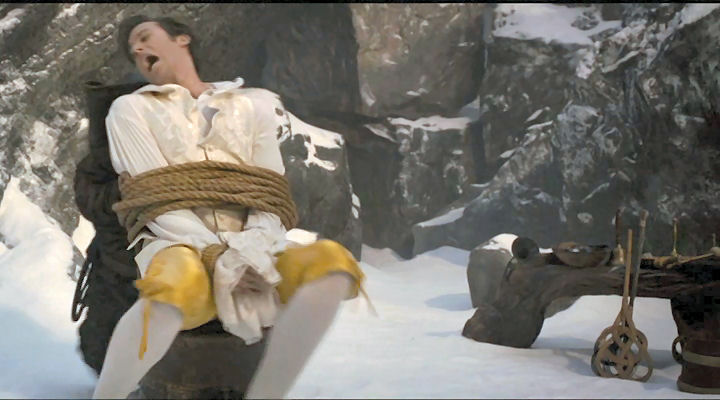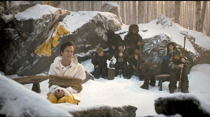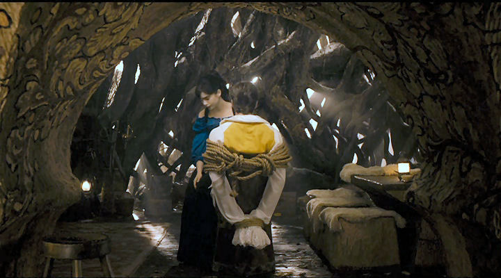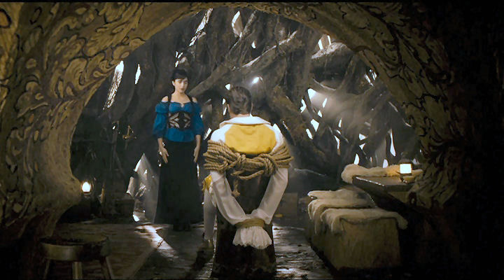 of the evil queen, the dwarfs keep him tied up until the spell can be broken by Snow White's kiss.