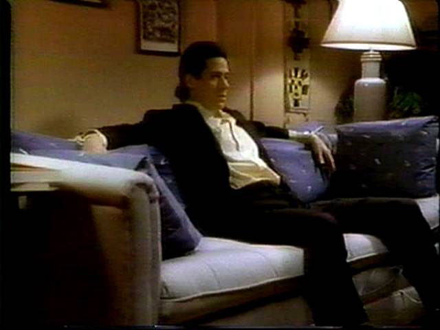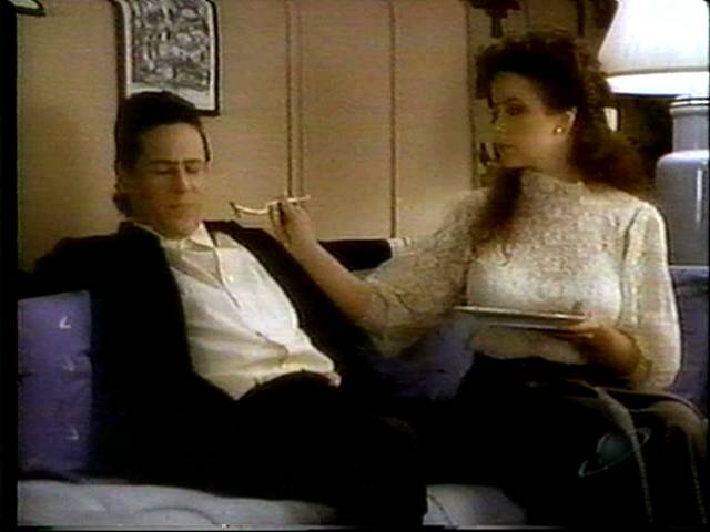 When Rob tries to kill Linda Blair because she's a witch, she keeps him tied to the couch until he changes his mind. This, along with the Northern Exposure scene, makes two scenes where women hold him captive and try to feed him.