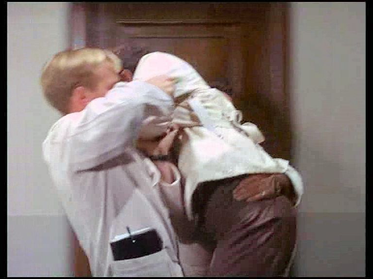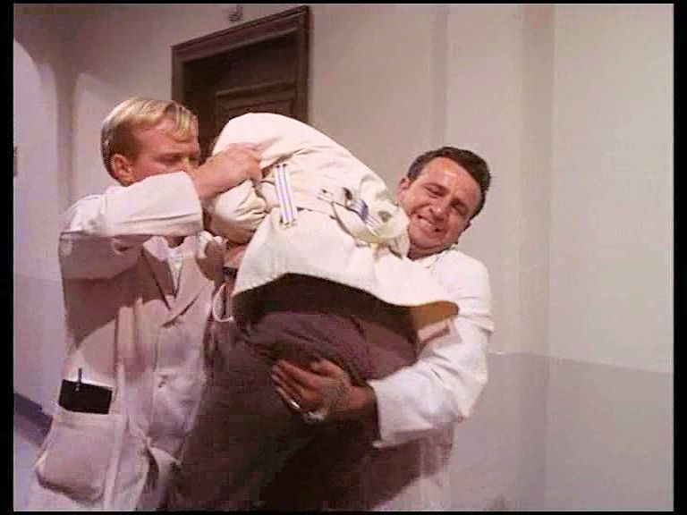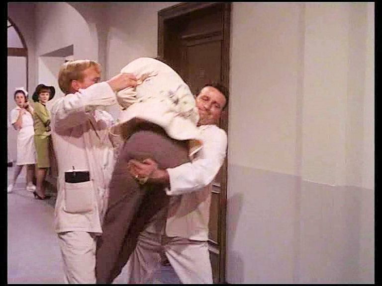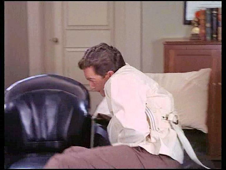 Stanley ends up in a straitjacket after letting on that he suddenly can't fly.