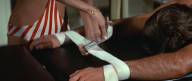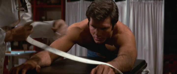 Herren plays a big dumb hick with a really bad southern accent. Raquel Welch, playing Rex Reed, has his/her way with him after tying him down to a table.