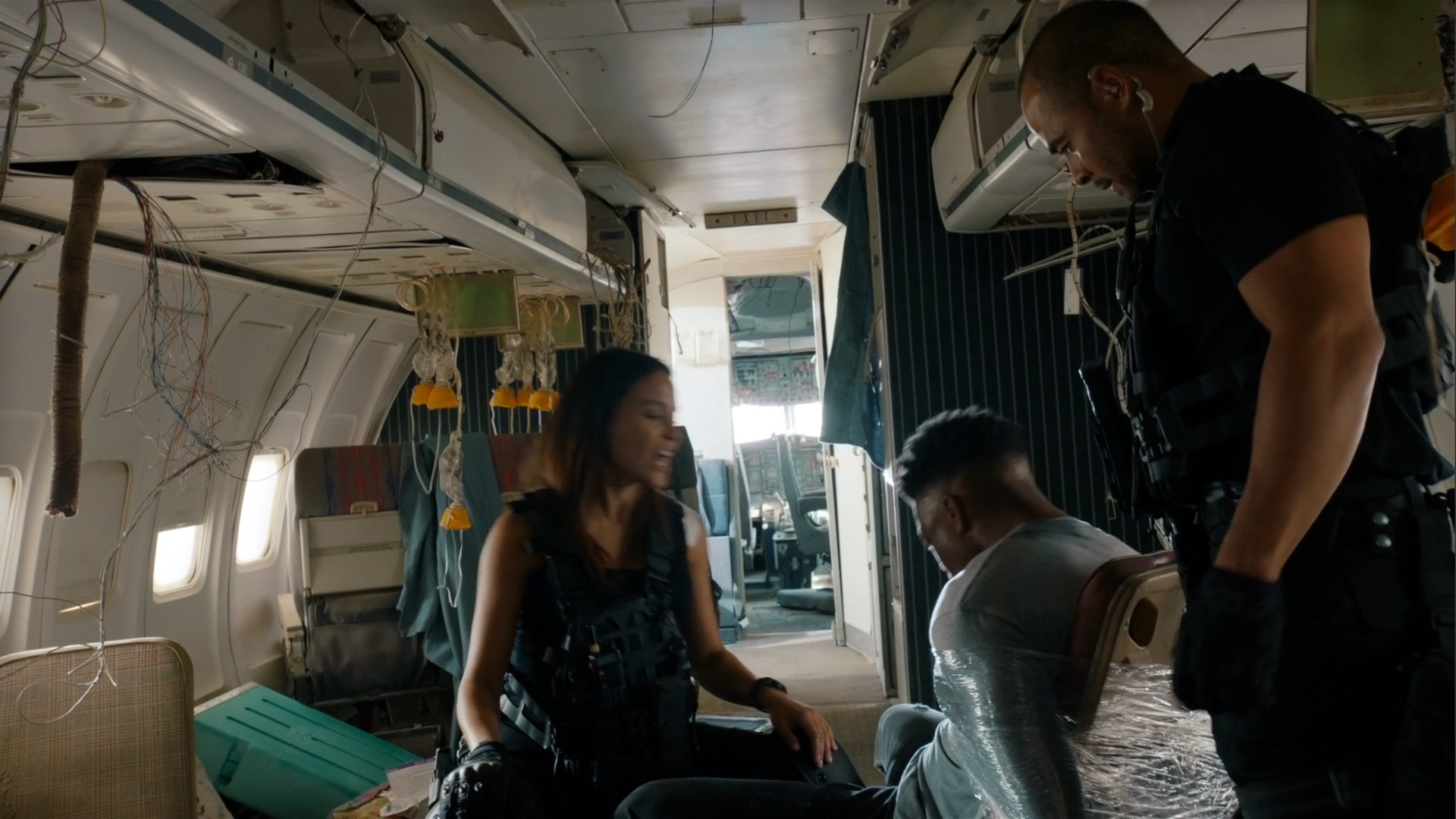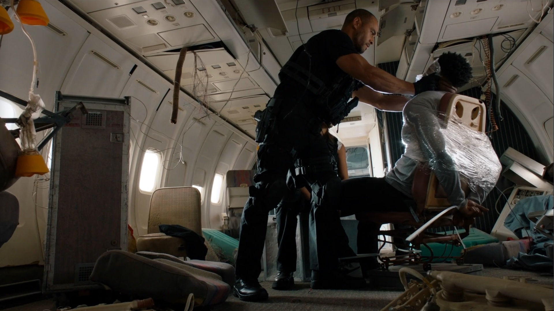 Agent Roundtree is kidnapped and held at a yard for damaged airplanes.