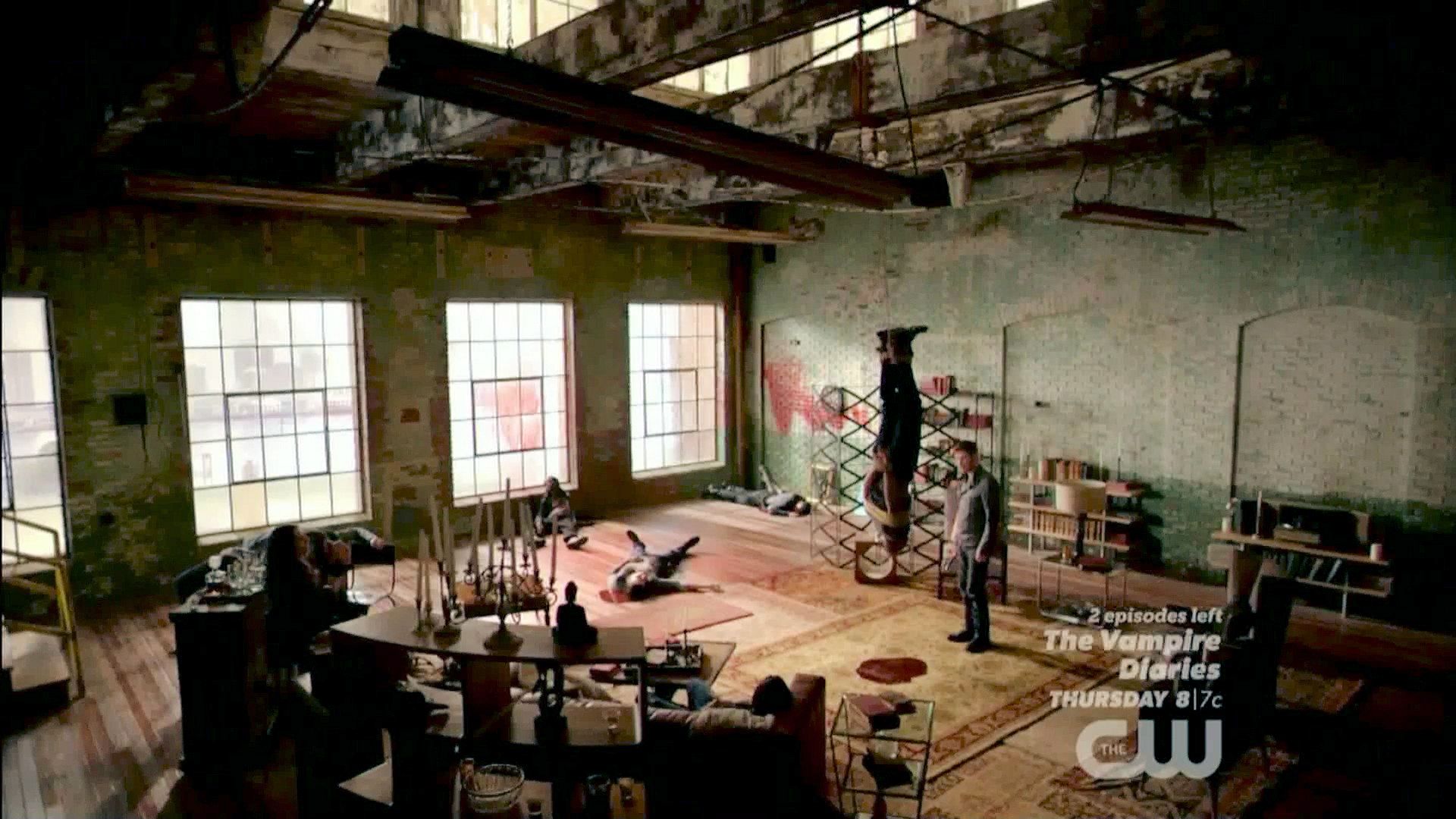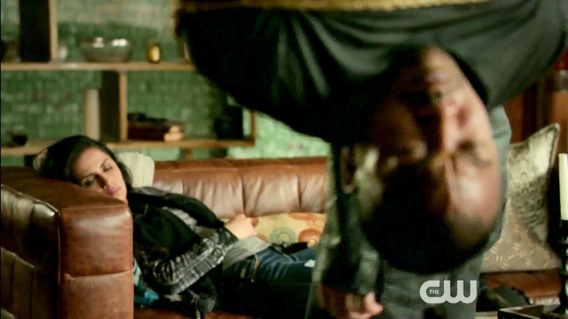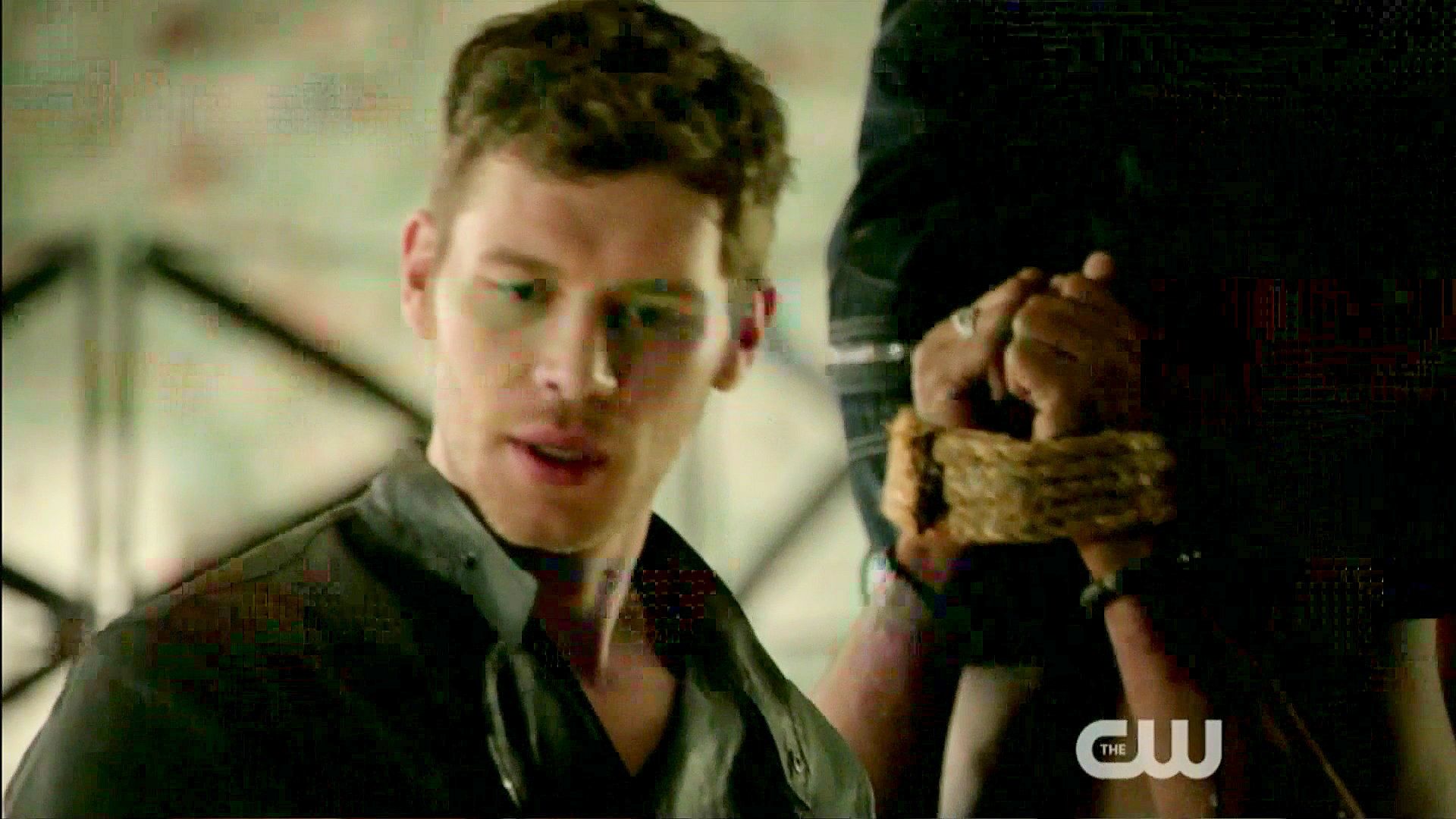 Klaus makes his way to Marcel’s, where he hangs him upside down and drains the vervain out of his system.
