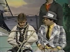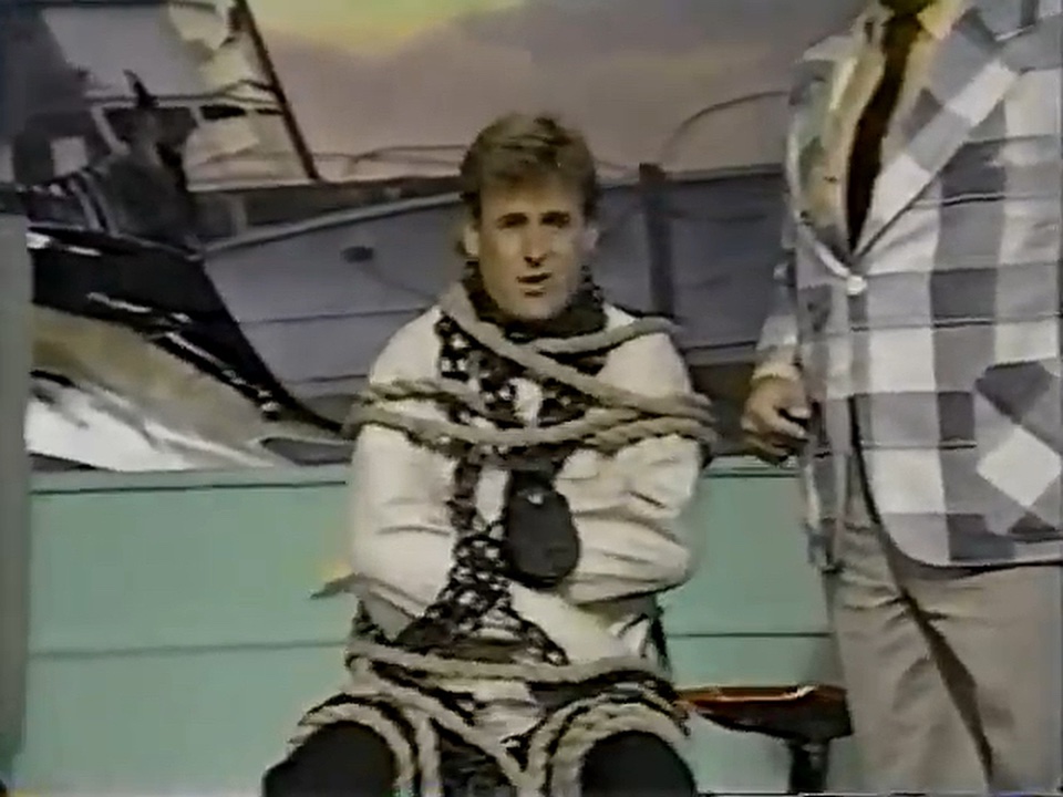Dave Coulier assists Joel Hodgson with an escape trick.