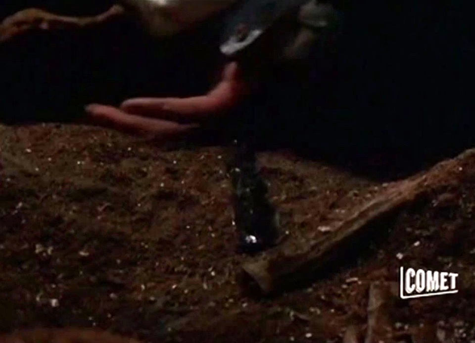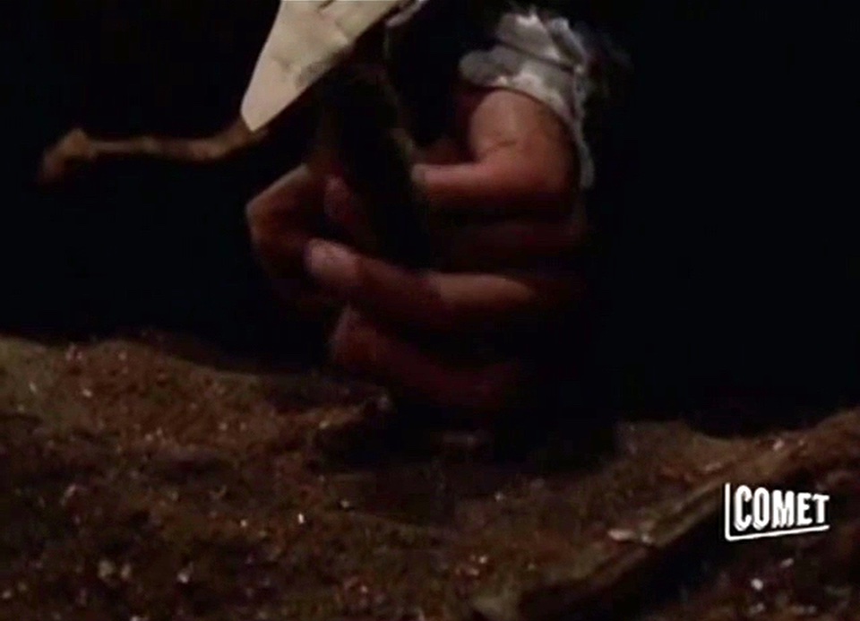 A man is imprinted with the last memories of a long suspended alien who was attacked by primitive men.