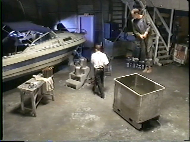 An ex-con gets in over his head and is threatened with dunking into an acid bath. He manages to get the controls and dump