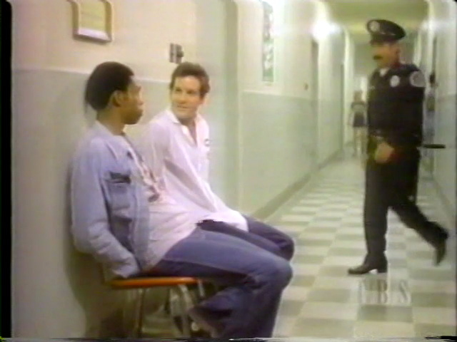 Guttenberg plays a habitual troublemaker who gets arrested again. At the station, Larvell Jones makes a gunfire sound and scares everyone.