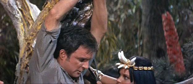 A jungle guide is thrown backwards in time to a kingdom of brunette women.