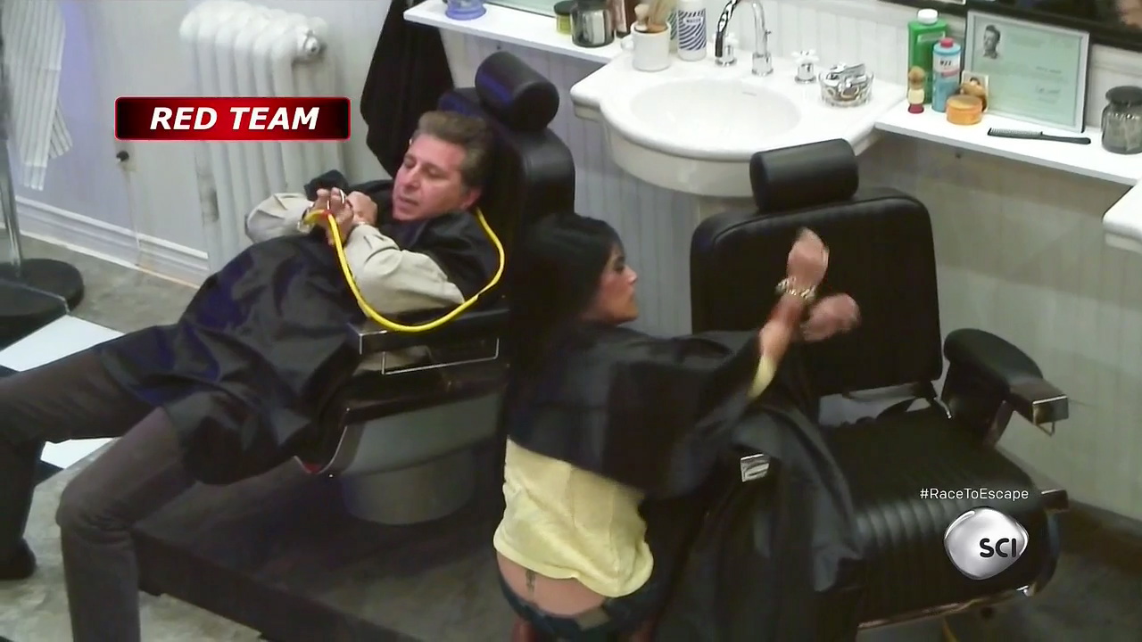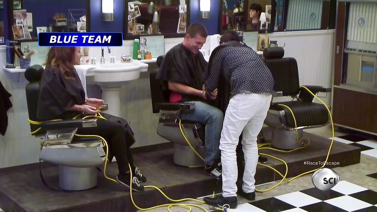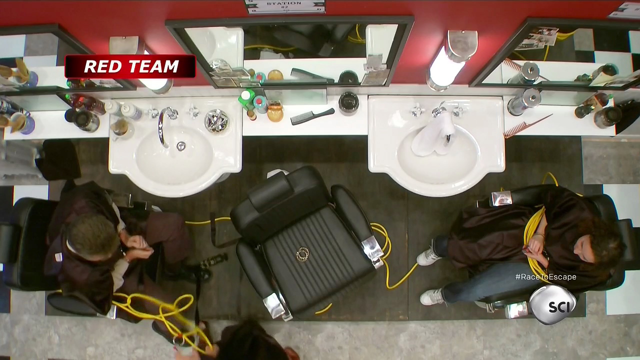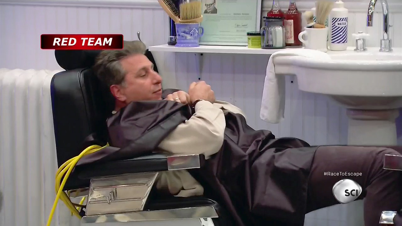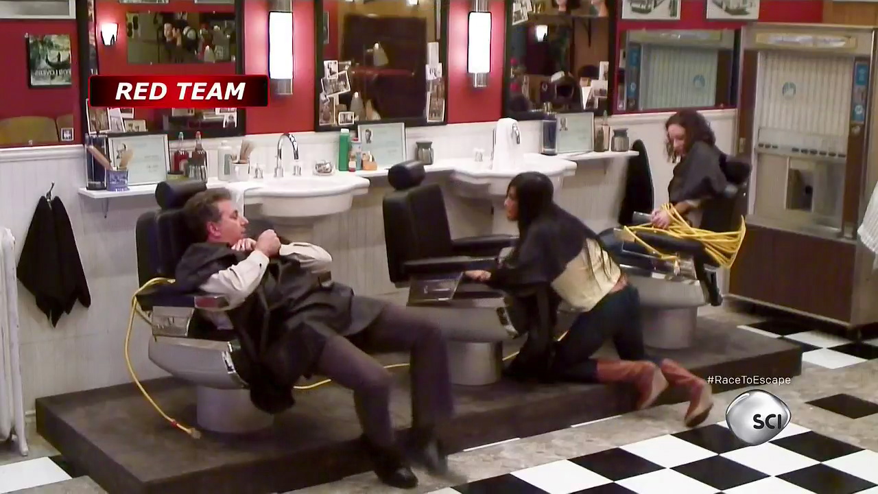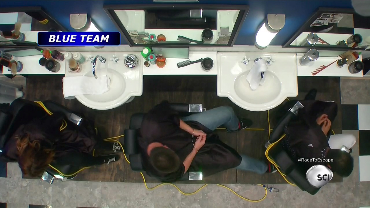 Contestants are handcuffed and tied to barber chairs, and must escape.