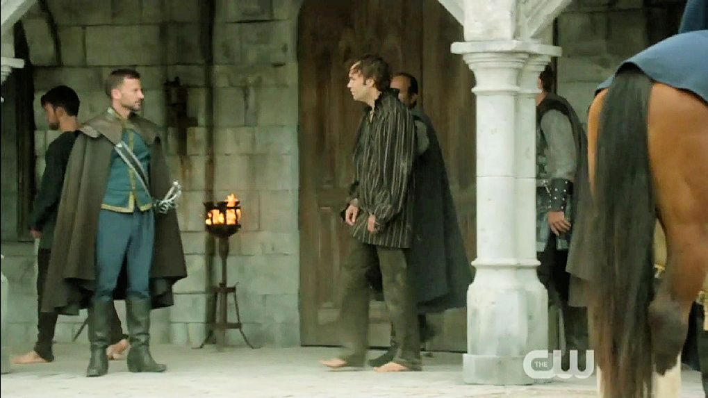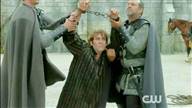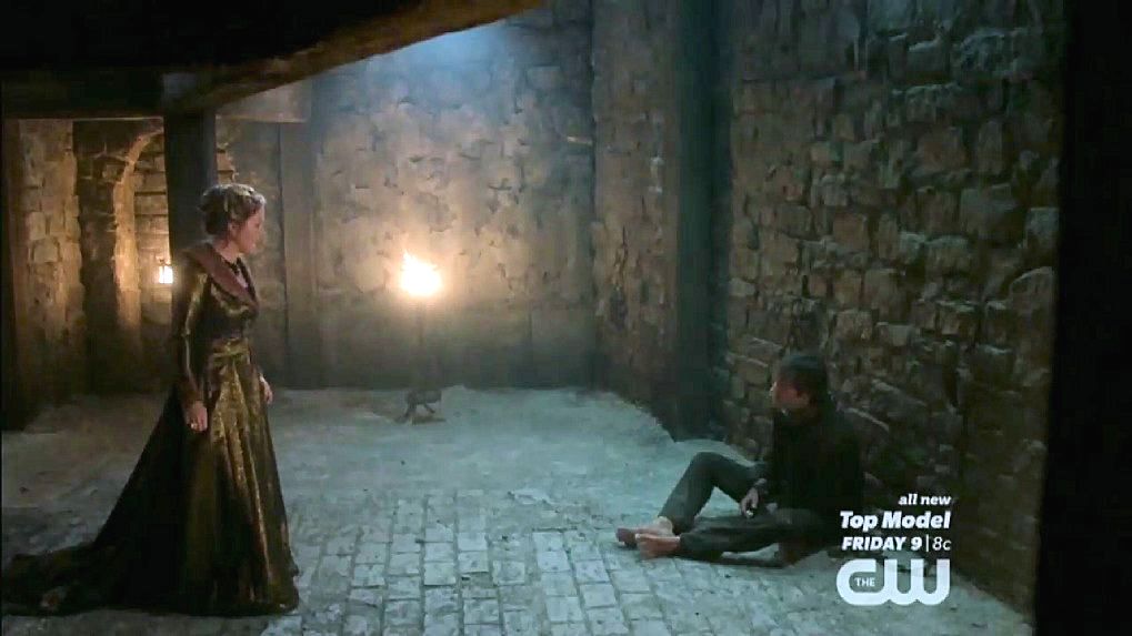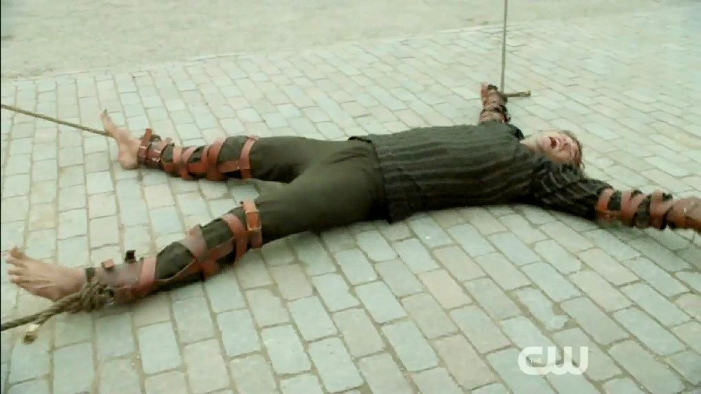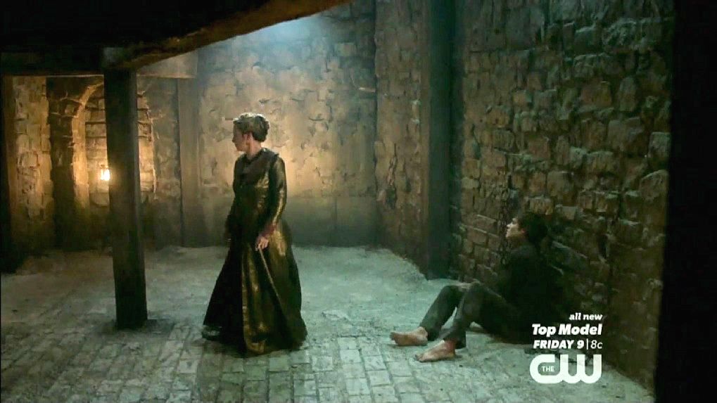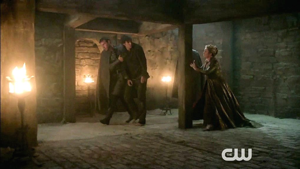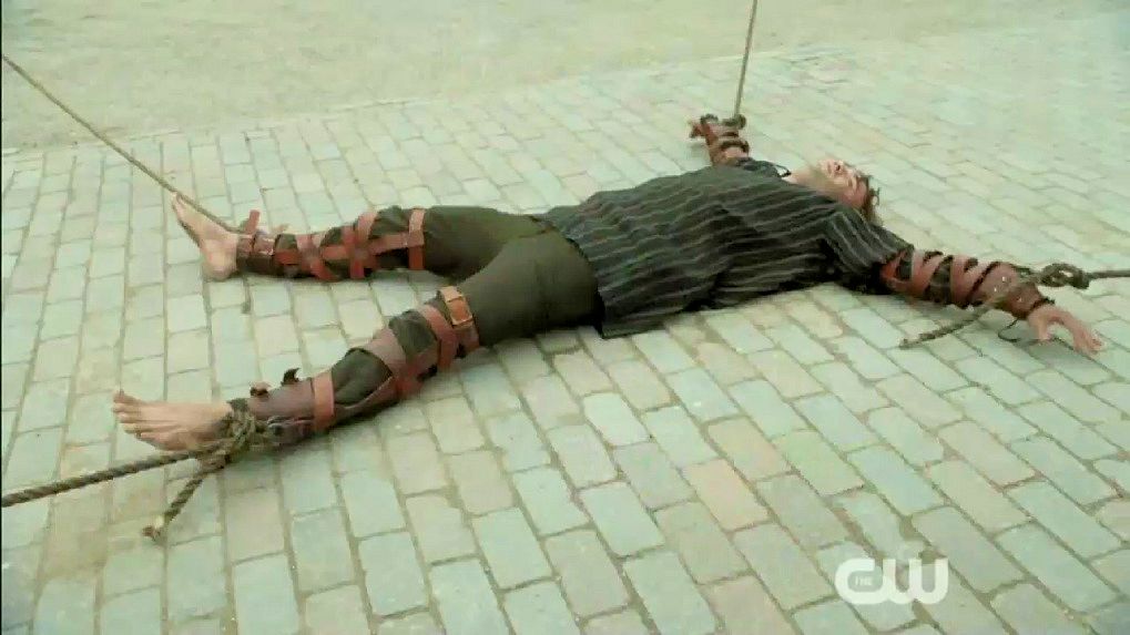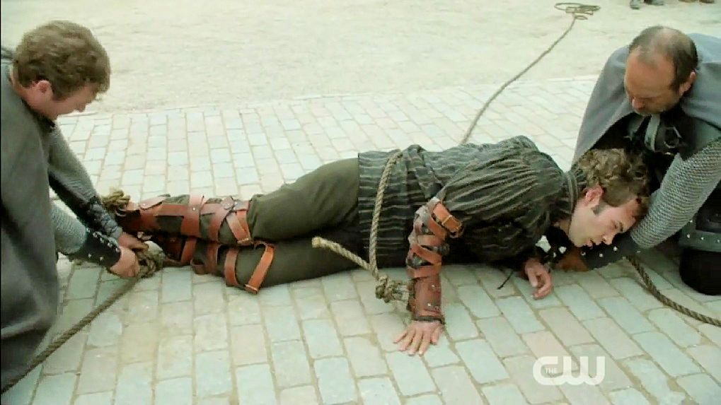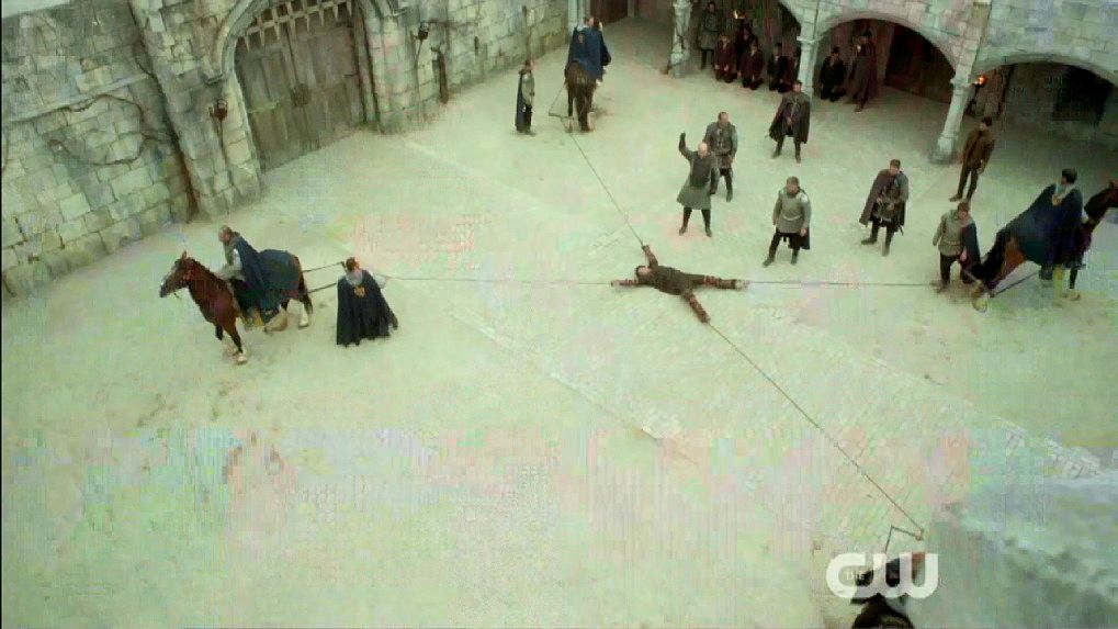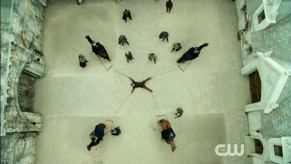 Just before Nostradamus is executed by being drawn and quartered, Mary halts the execution.