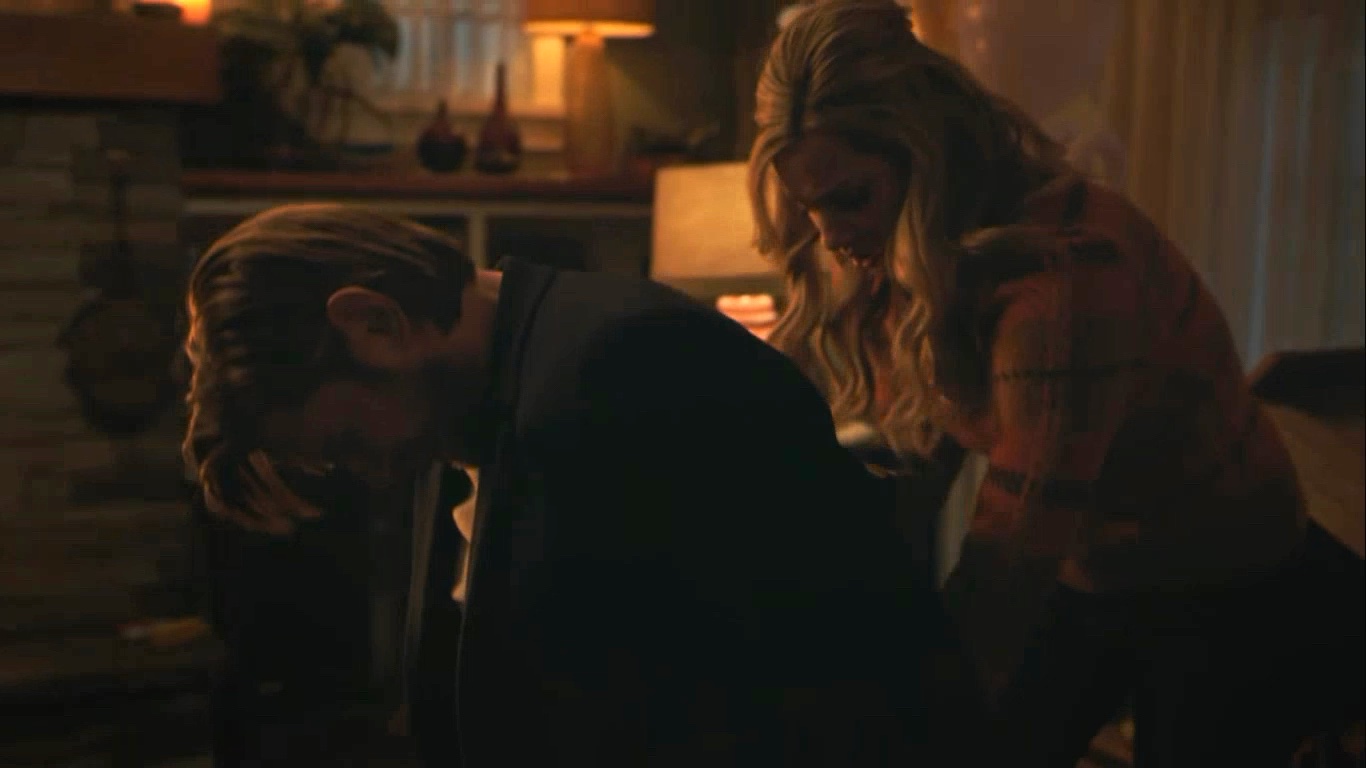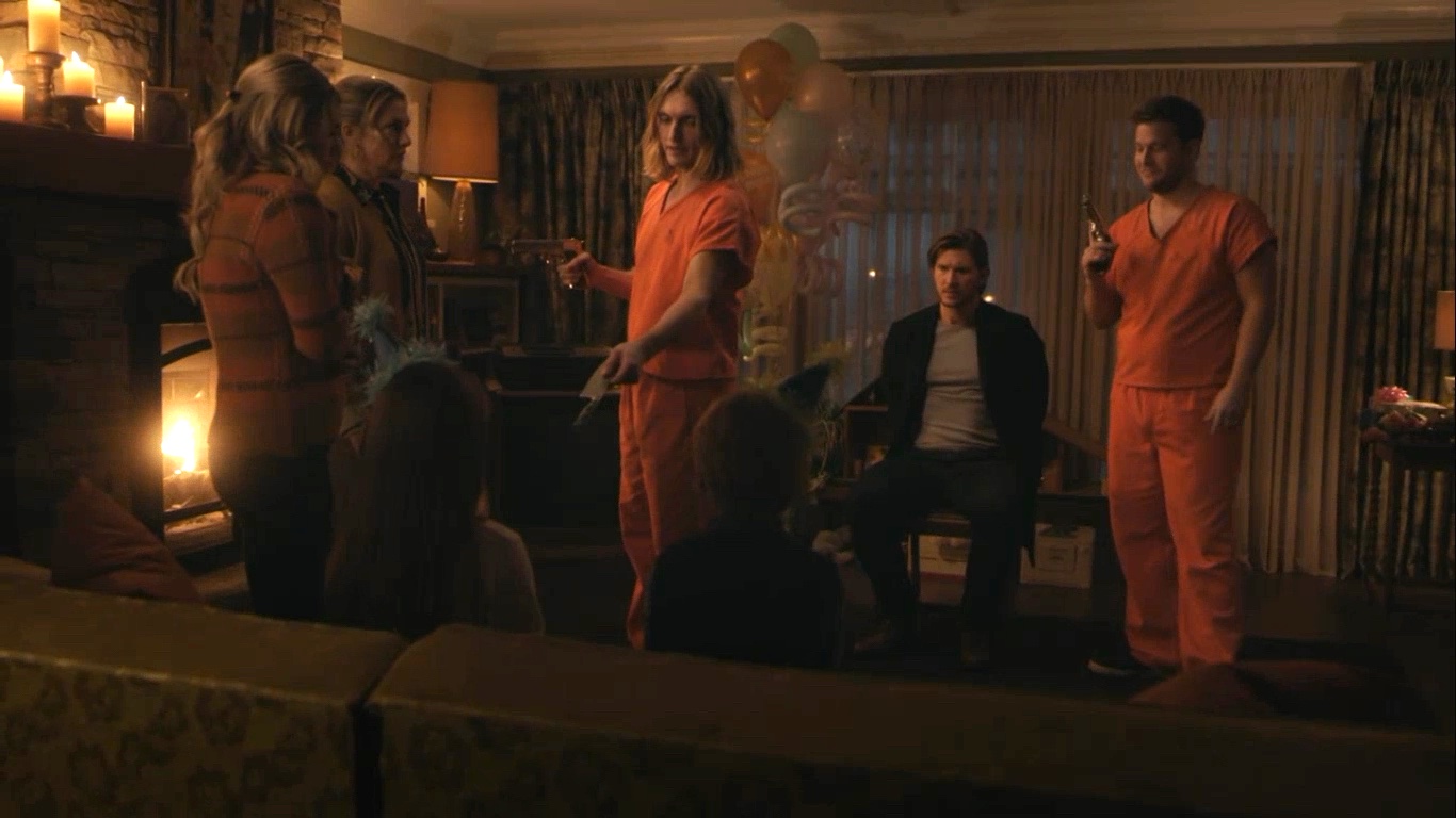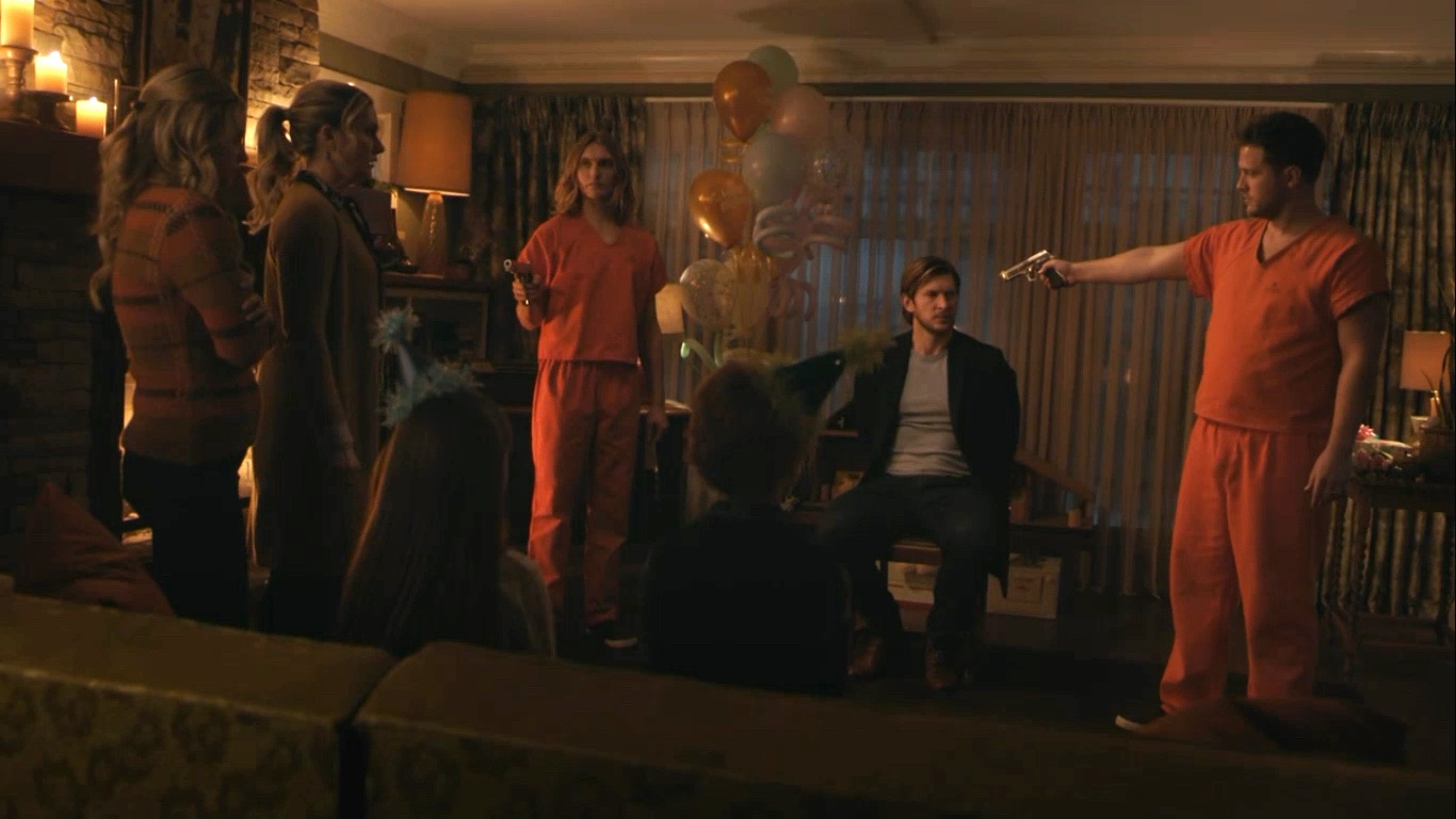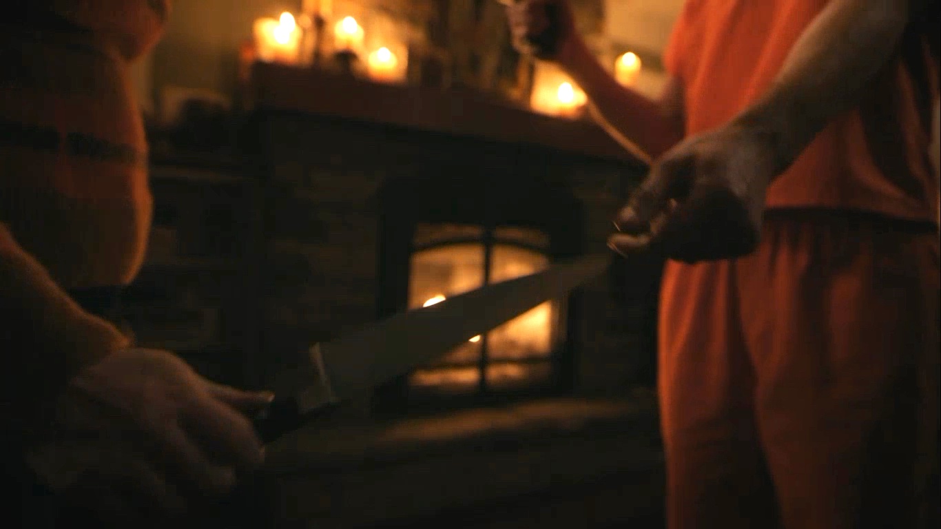 When Charles and Chic tie up Glen and hold Betty and her family hostage, Betty gets the upper hand by using the knife given to her by Charles.