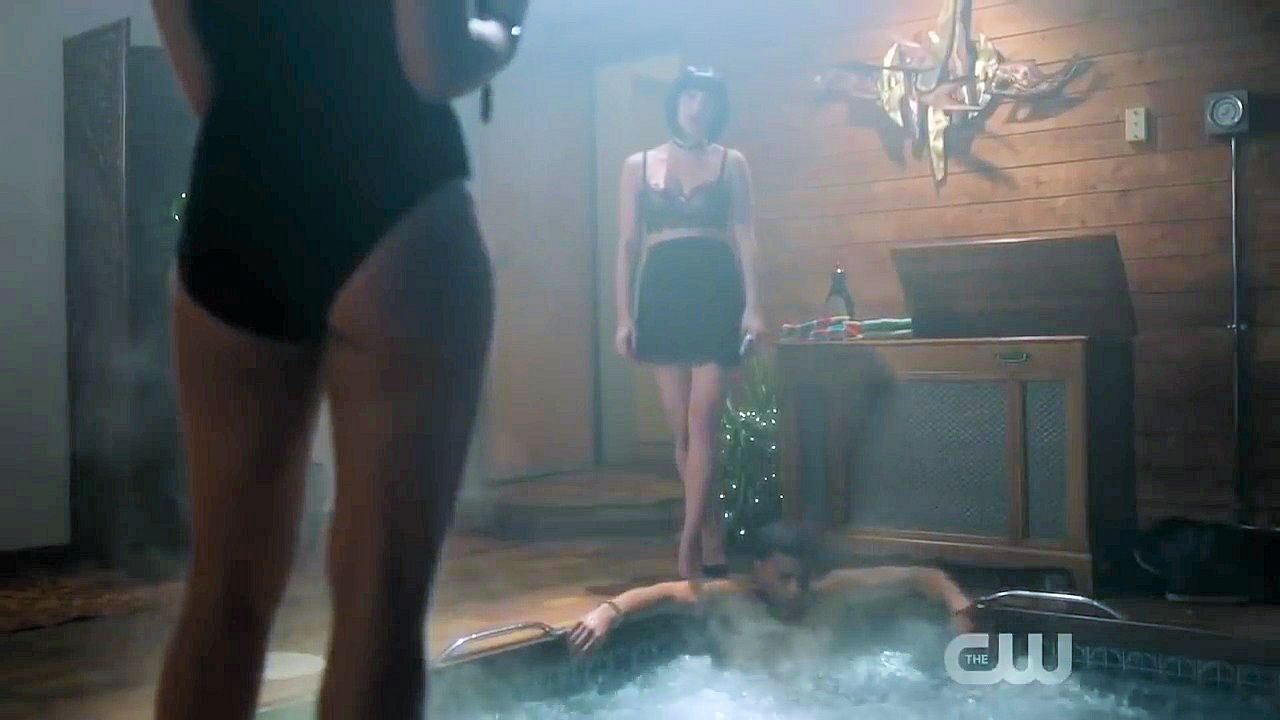 Betty and Veronica handcuff Chuck Clayton in a hot tub and turn up the heat.