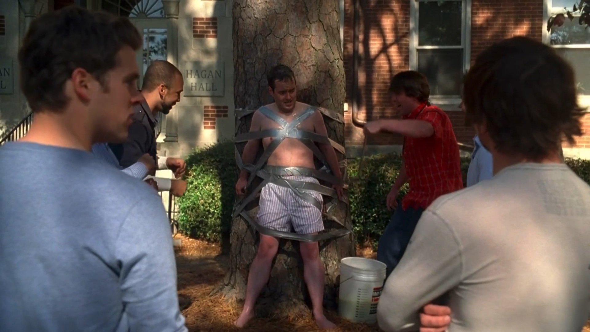 College students traveling to compete in a beer pong tournament are interrogated by the CIA.