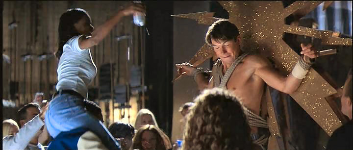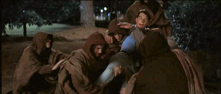 Derek is tied up and gagged by a bunch of frat guys.