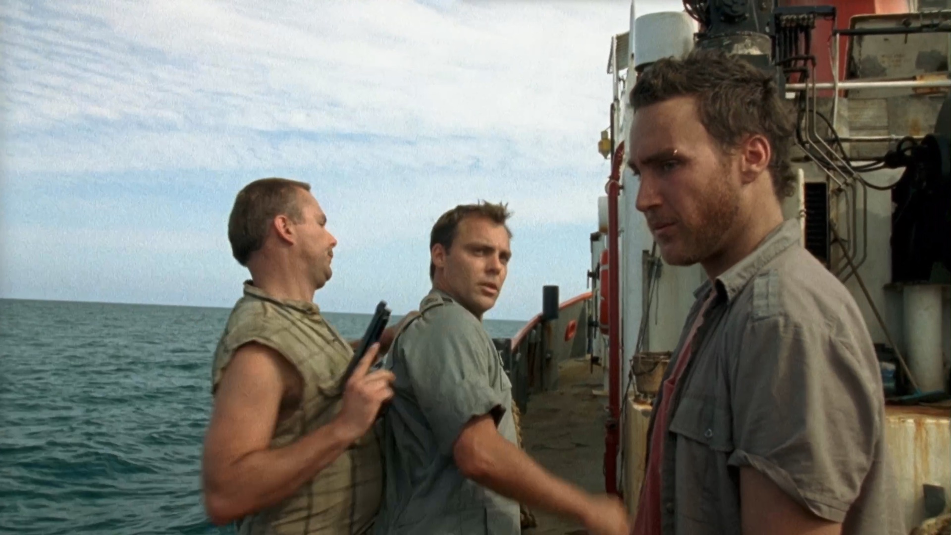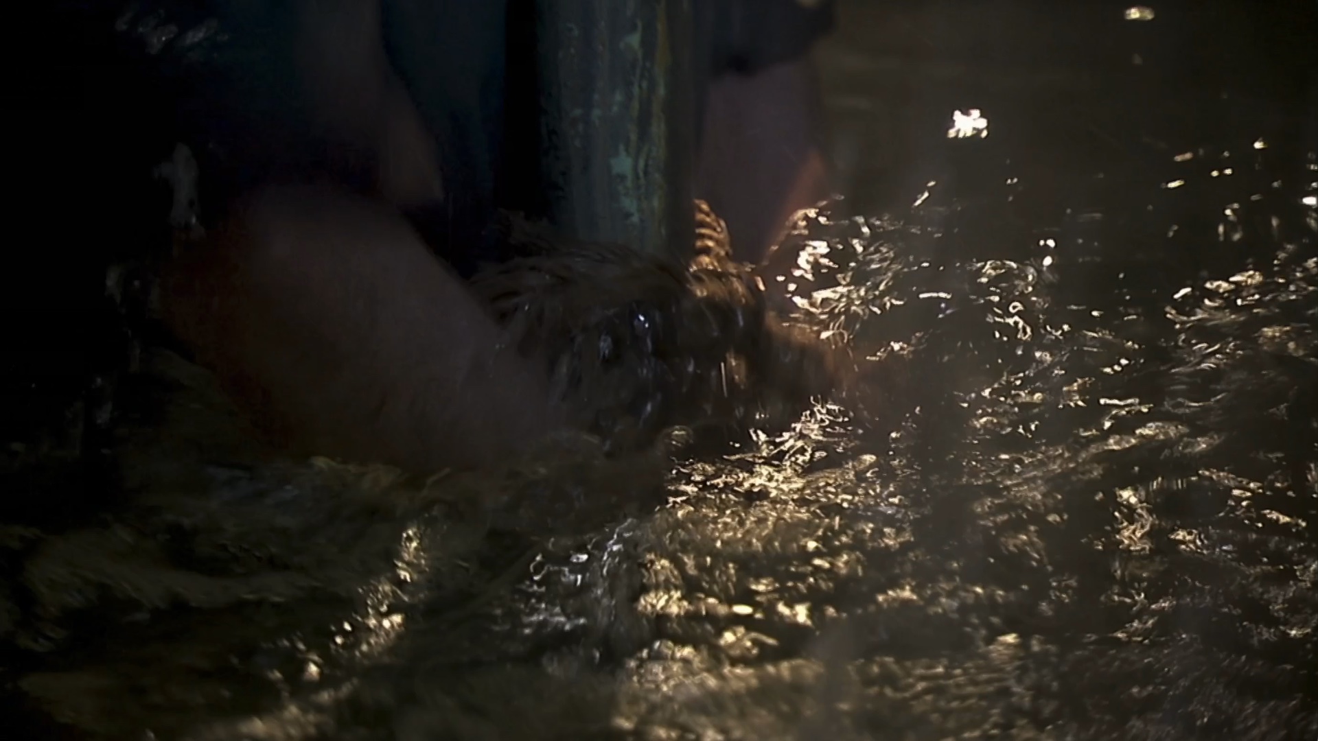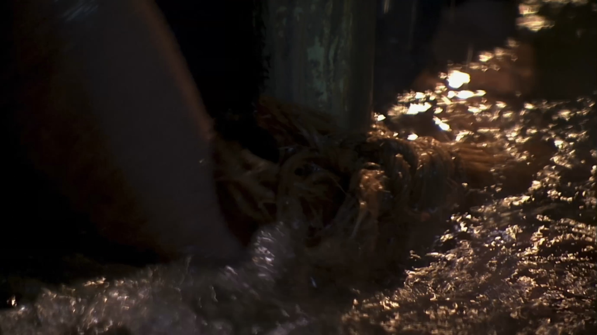 Swain is taken captive by smugglers and tied below deck on a sinking ship.