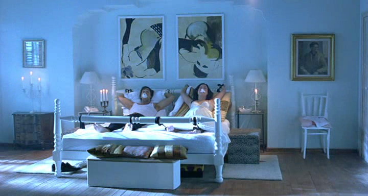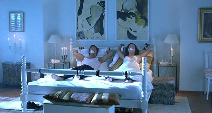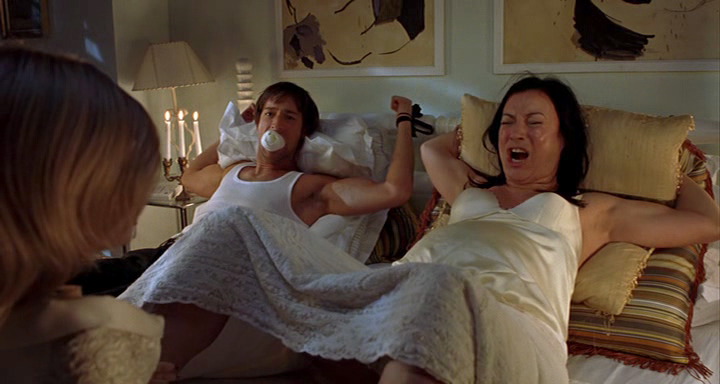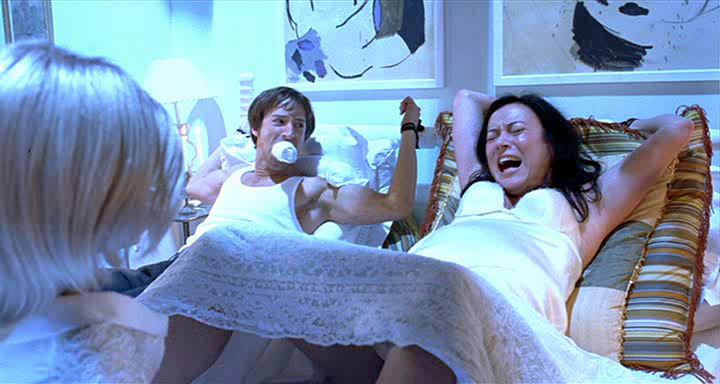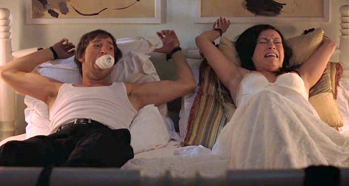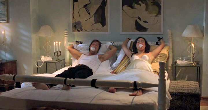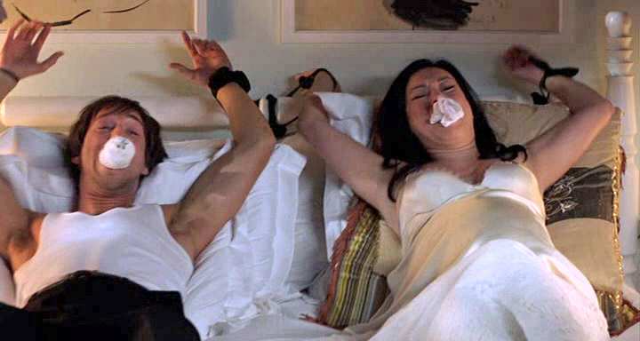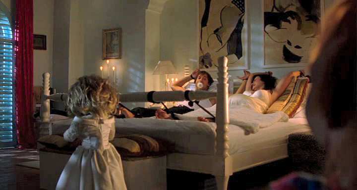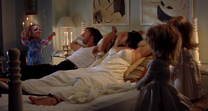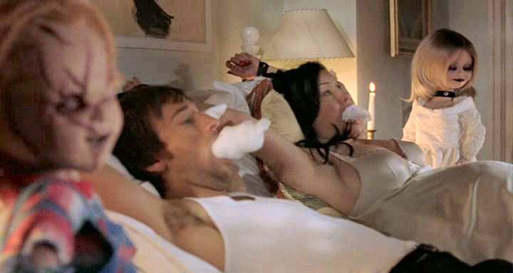 Jennifer Tilly and her chauffeur (billed as Steve Lawton) are tied to a bed and tormented by Chucky's minions.