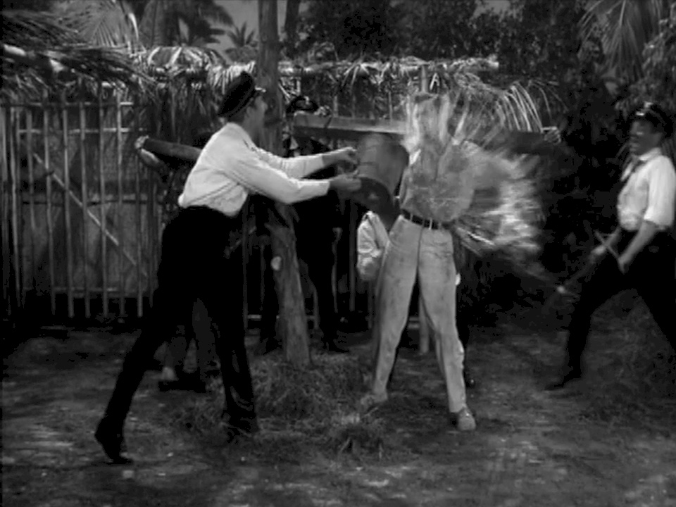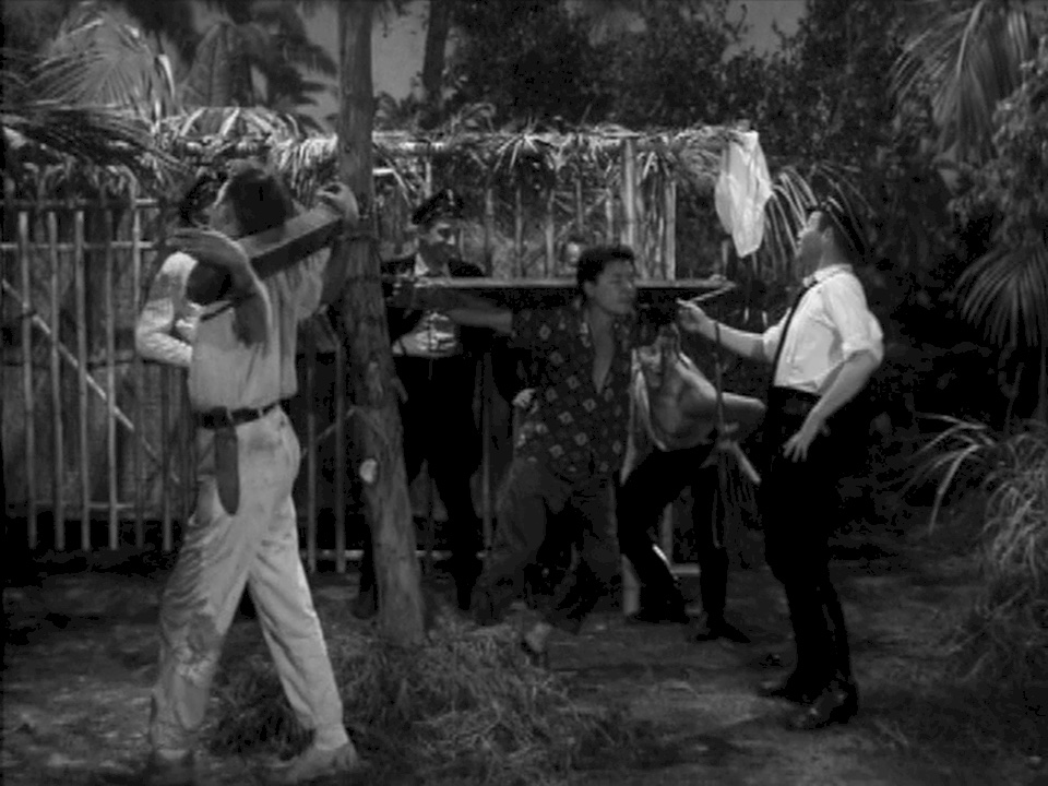 A man and woman wash up on a desert island and befriend a local, and they're all captured by an ex-Nazi.