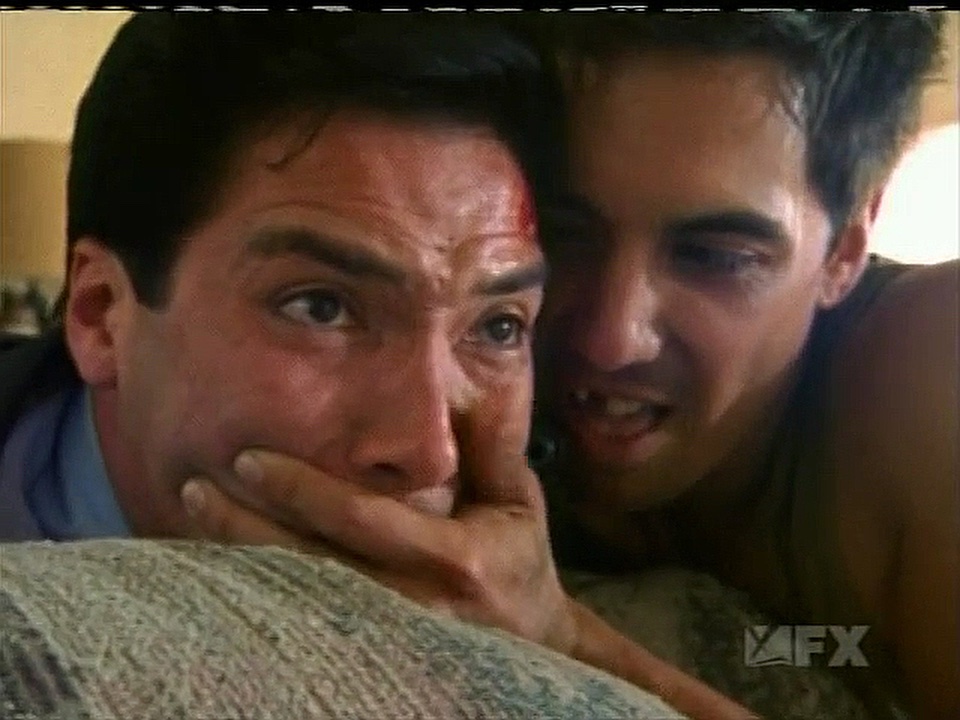 Aceveda is tied up and abused by gang members.