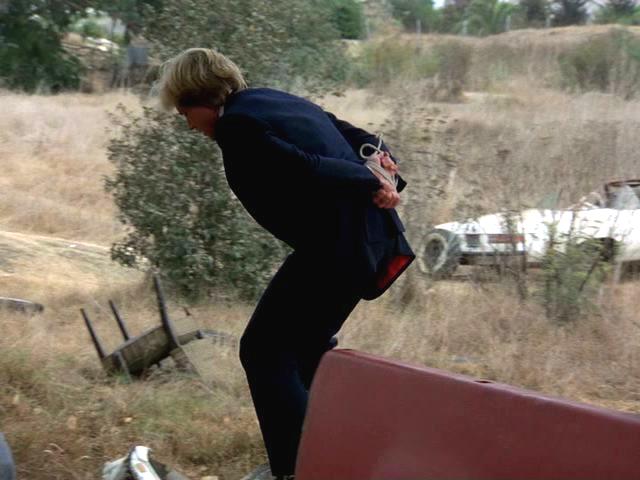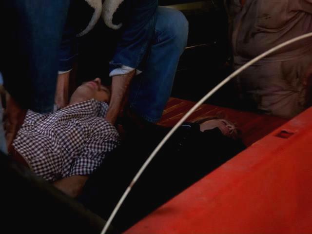 While car thieves are sending an unconscious Rick aloft on a hang glider, A.J. comes to and tries to get untied and save him.