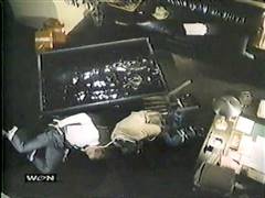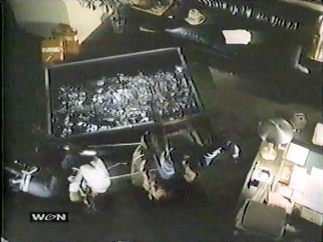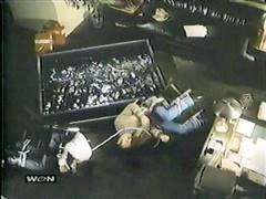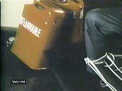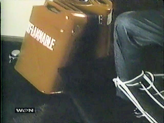 Rick and A.J. are tied to chairs in a tub of kerosene with a burning candle.