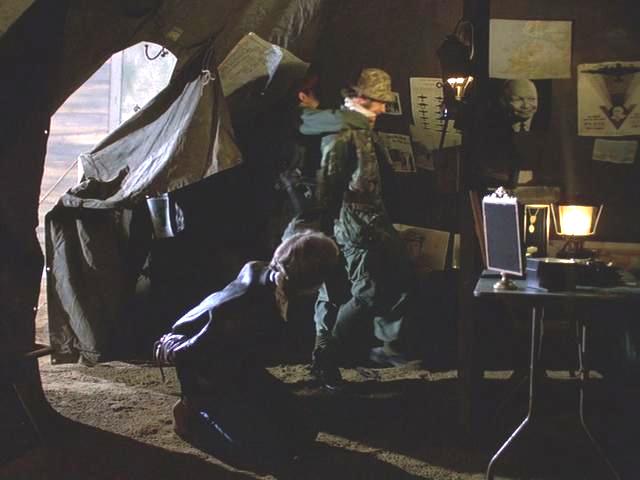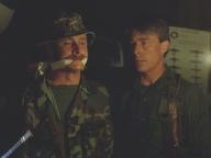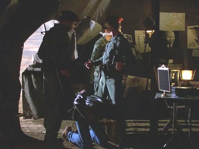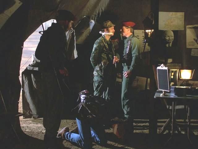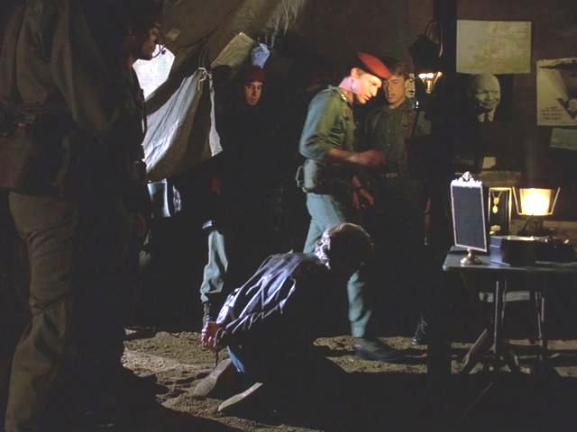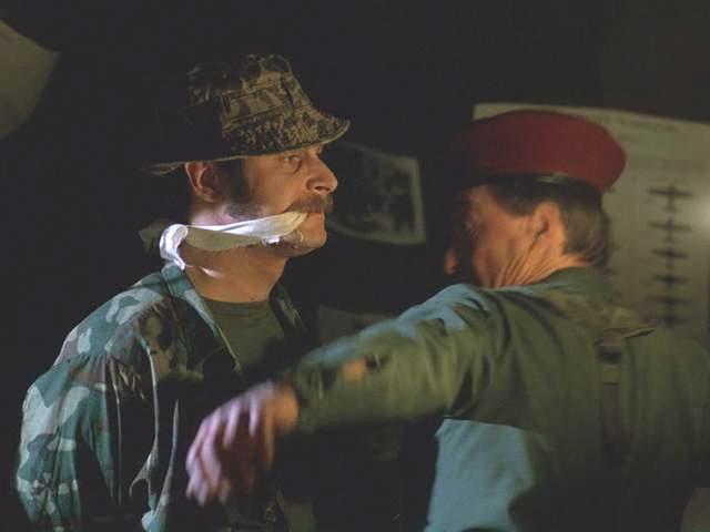 The guys are captured by a paramilitary group, tied, gagged and assaulted.