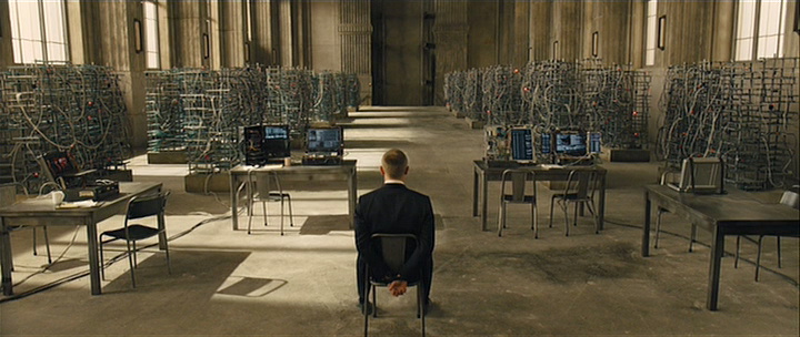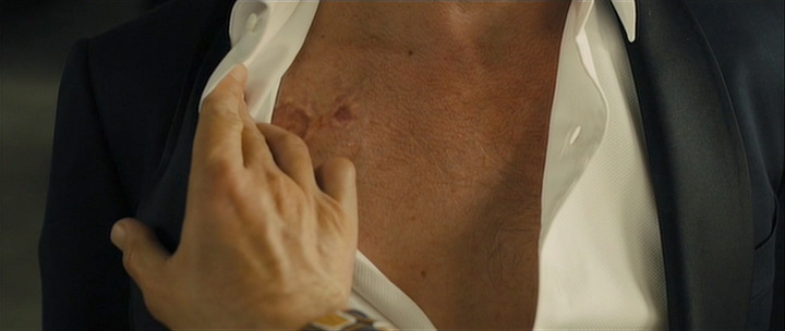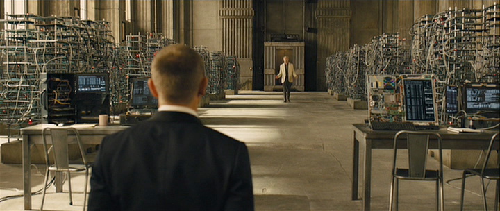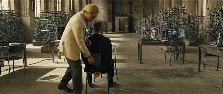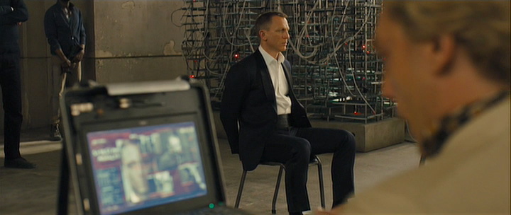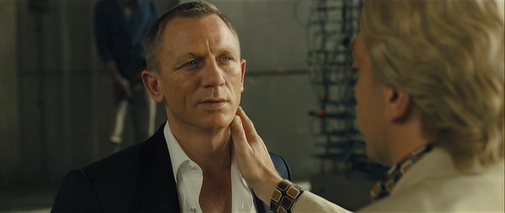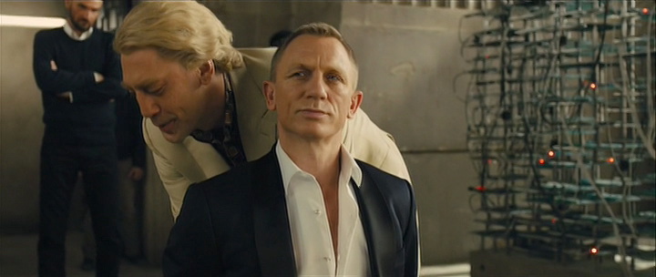 Bond is taken prisoner by the villian (Javier Bardem), who tenderly reveals all the plot details Bond hasn't known