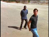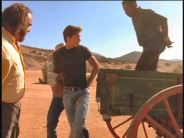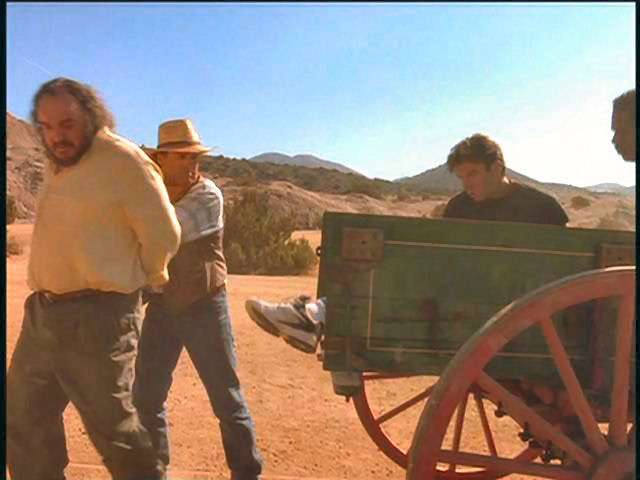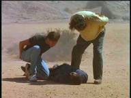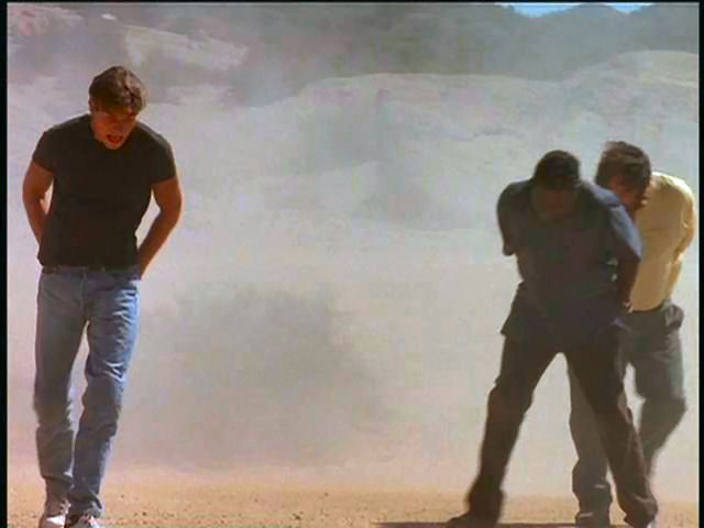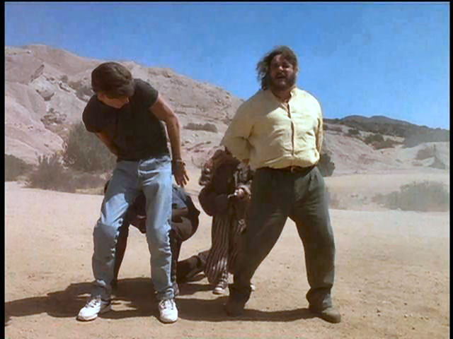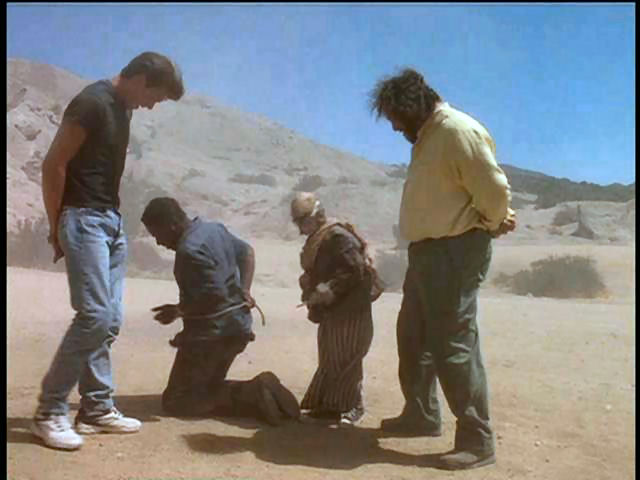 After tying Quinn to a tree and tormenting him for a while, the locals leave all of the guys tied up in the desert.