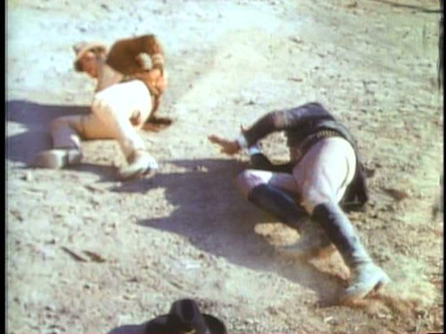 To obtain the cooperation of James Sonnett, stagecoach robbers take Jeff hostage.