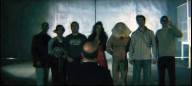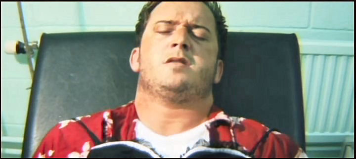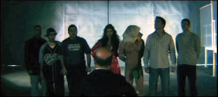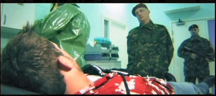 A man is tied down and left to be ravaged by zombies; then, members of a stag night party head to a military installation to