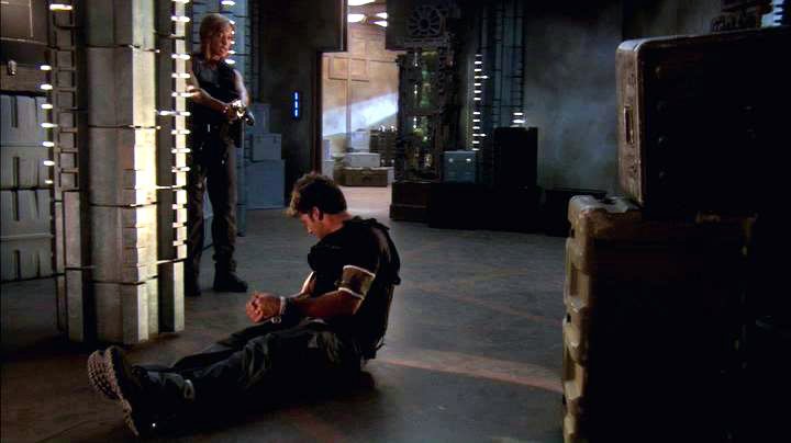 Sheppard is knocked out and tied up while an alien being occupies his body.