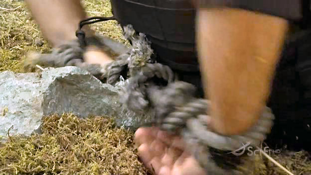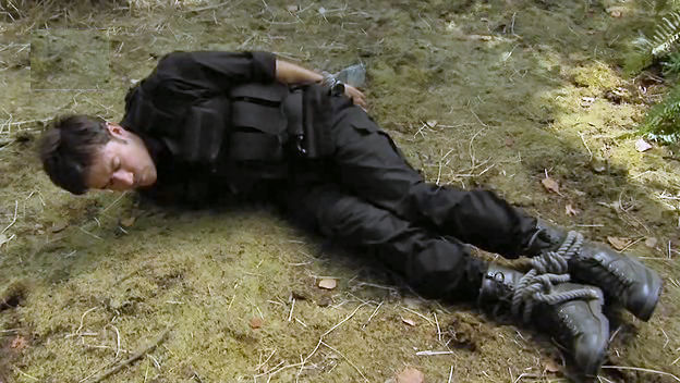 Sheppard is abducted and tied up by an entity posing as Koyla.