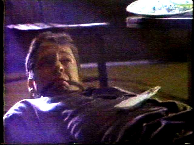 Chance is tied up and gagged by a girl and her boyfriend. The scene is very dimly lit, unfortunately.