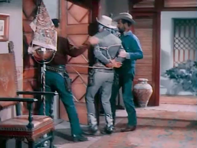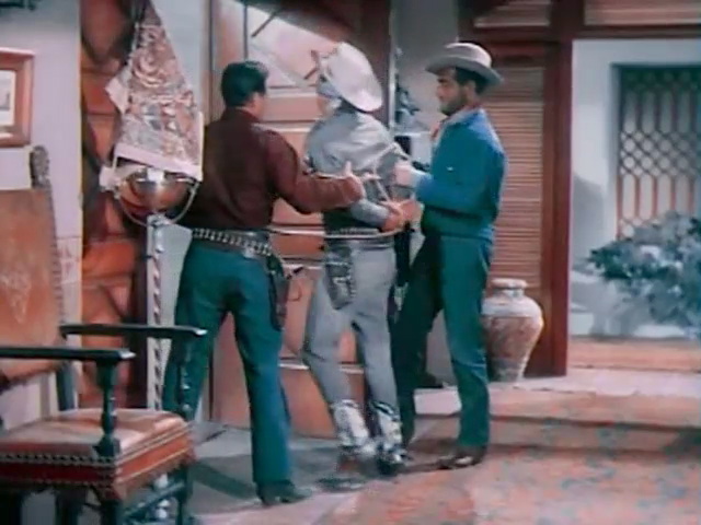 Roy Rogers arrests a suspect, but the outlaw escapes and takes Roy hostage.