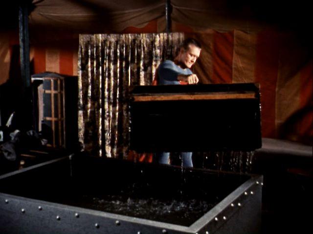 A villianous magician tricks the ever-gullible Jimmy into being placed in a straitjacket, and locked in a trunk that's put underwater. You know, Jimmy probably wouldn't have lasted this long if Superman weren't around.