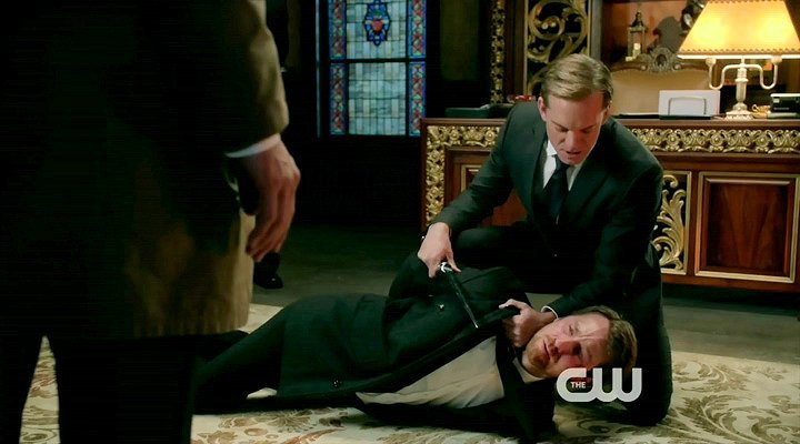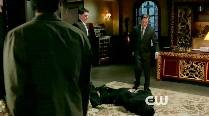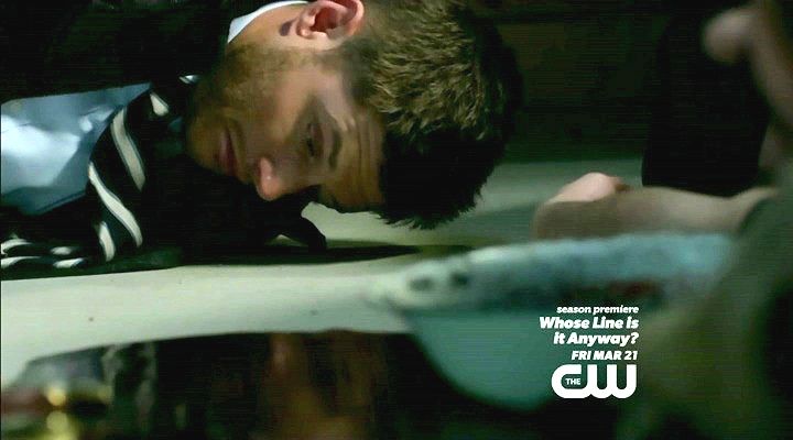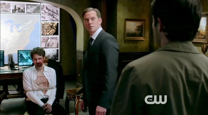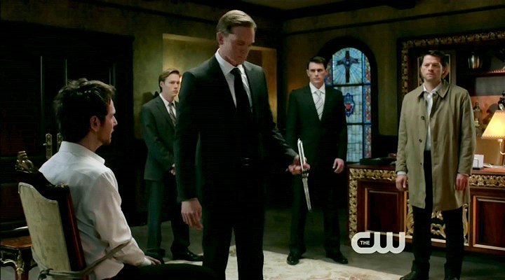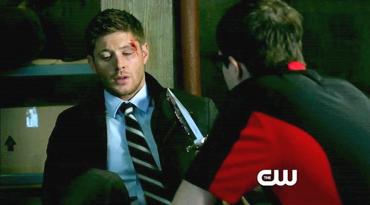 Dean is knocked out and tied up by a demon. Meanwhile, an angel tortures a prisoner.