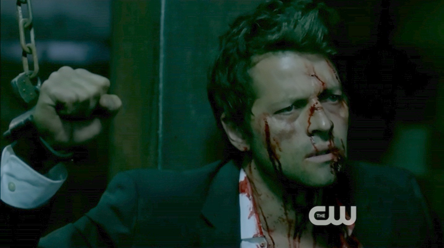 Castiel is tortured by Malachi and Theo.