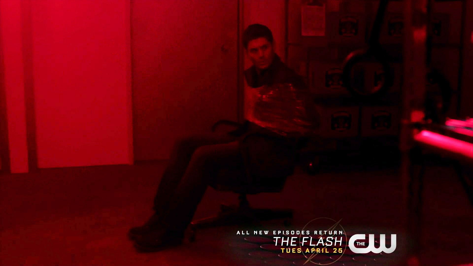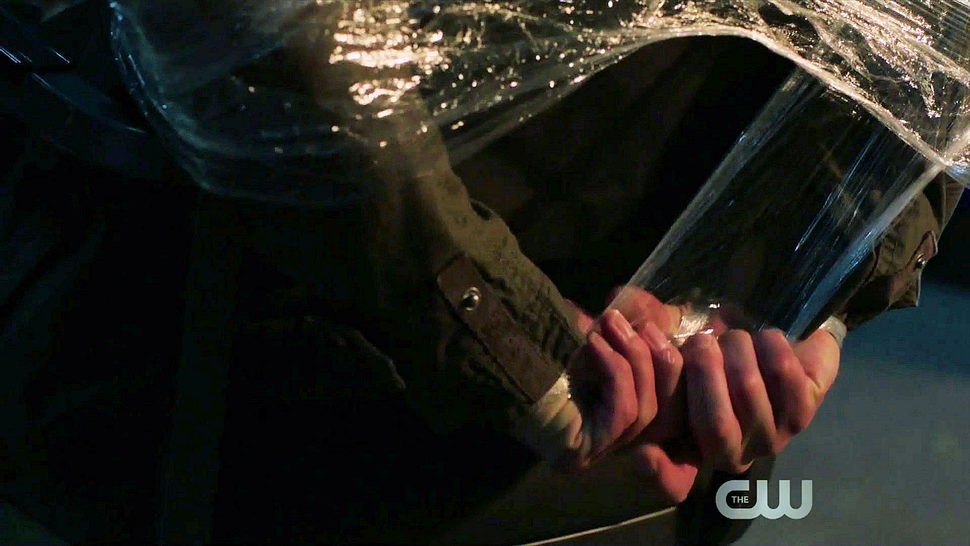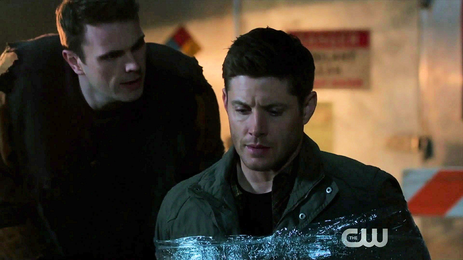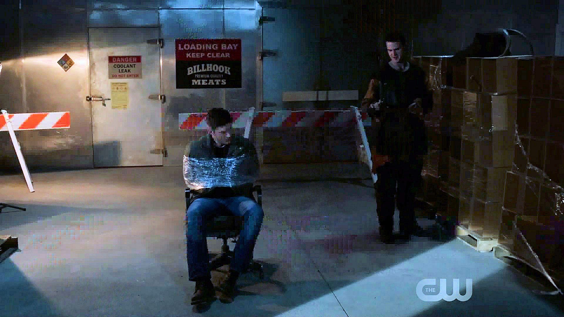 Dean is shrink-wrapped to a chair and left in a freezer.