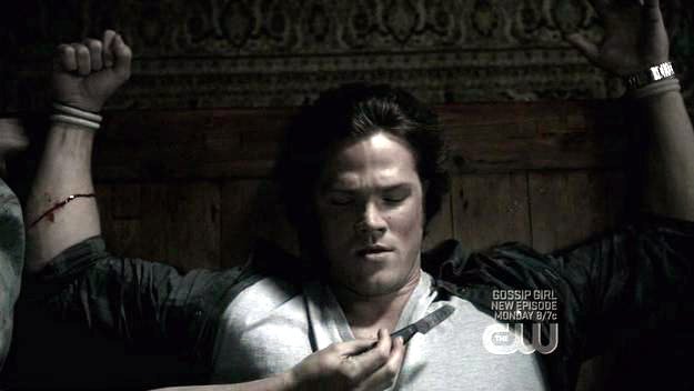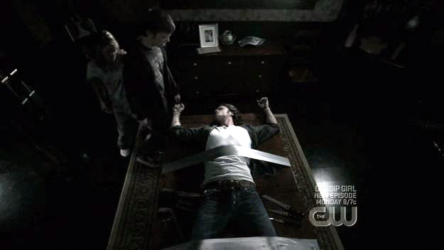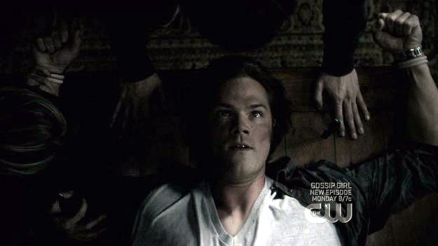 Sam is tied down by brother and sister ghouls.