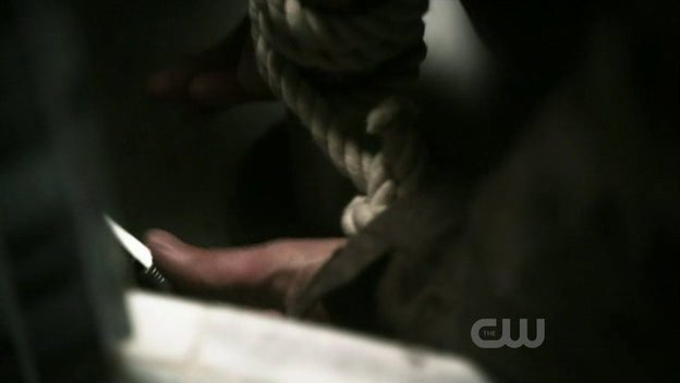 Sam and Dean are captured by the Goddess of Truth, who elicits some plot developments before the boys use a handy knife to cut their ropes.