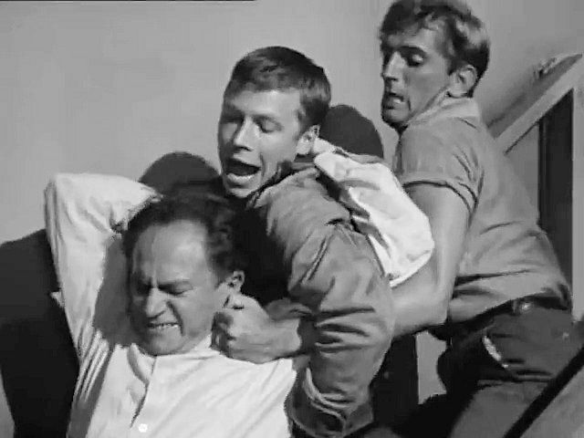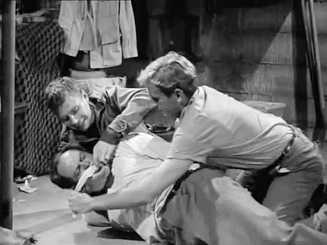 A watch repairman sets up a time bomb to go off when his wife and her lover have their rendezvous, but before he can leave he's tied up and gagged by two burglars (Tom Pittman and Harry Dean Stanton) in this episode directed by Alfred Hitchcock.