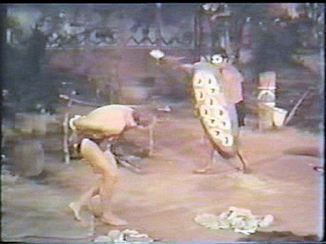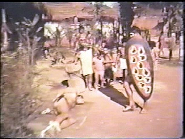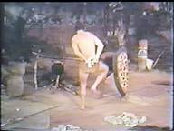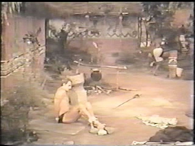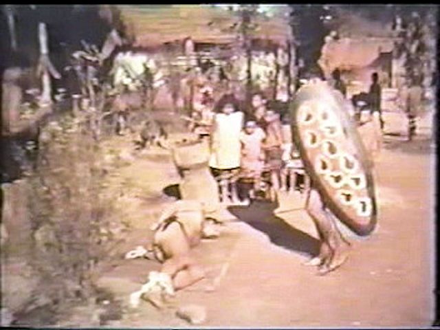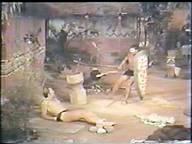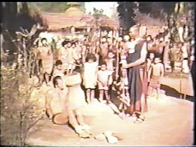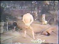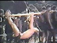 Tarzan is captured by angry natives while searching for a wounded Cheetah. He manages to get his feet untied and overpower a guard.
