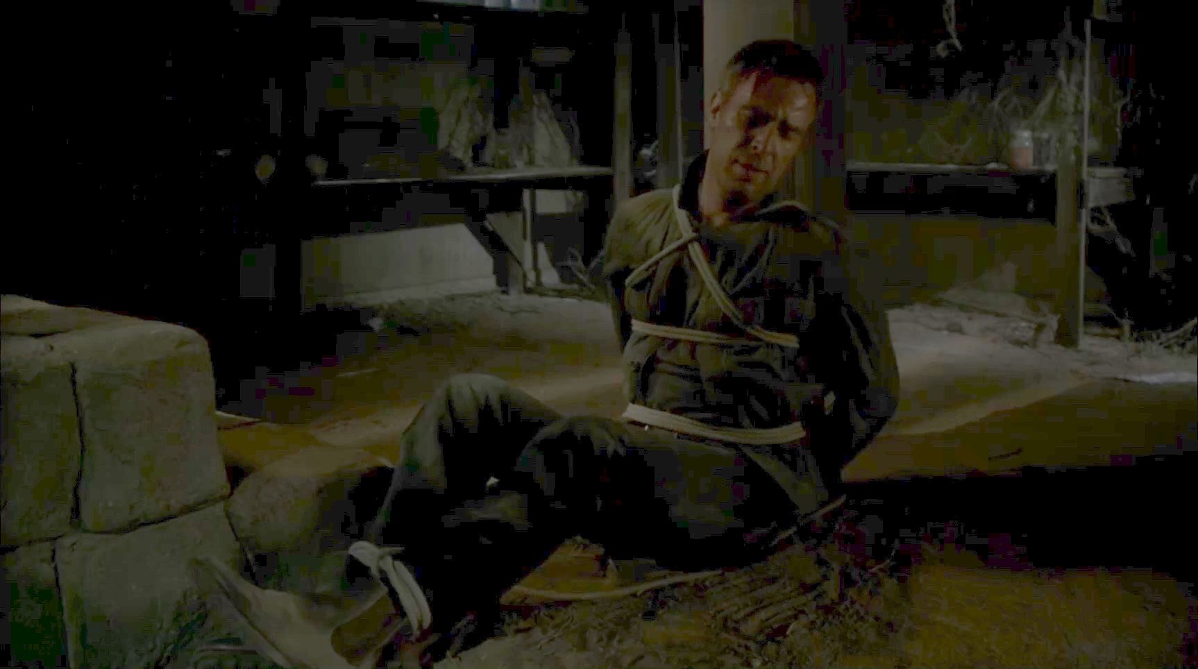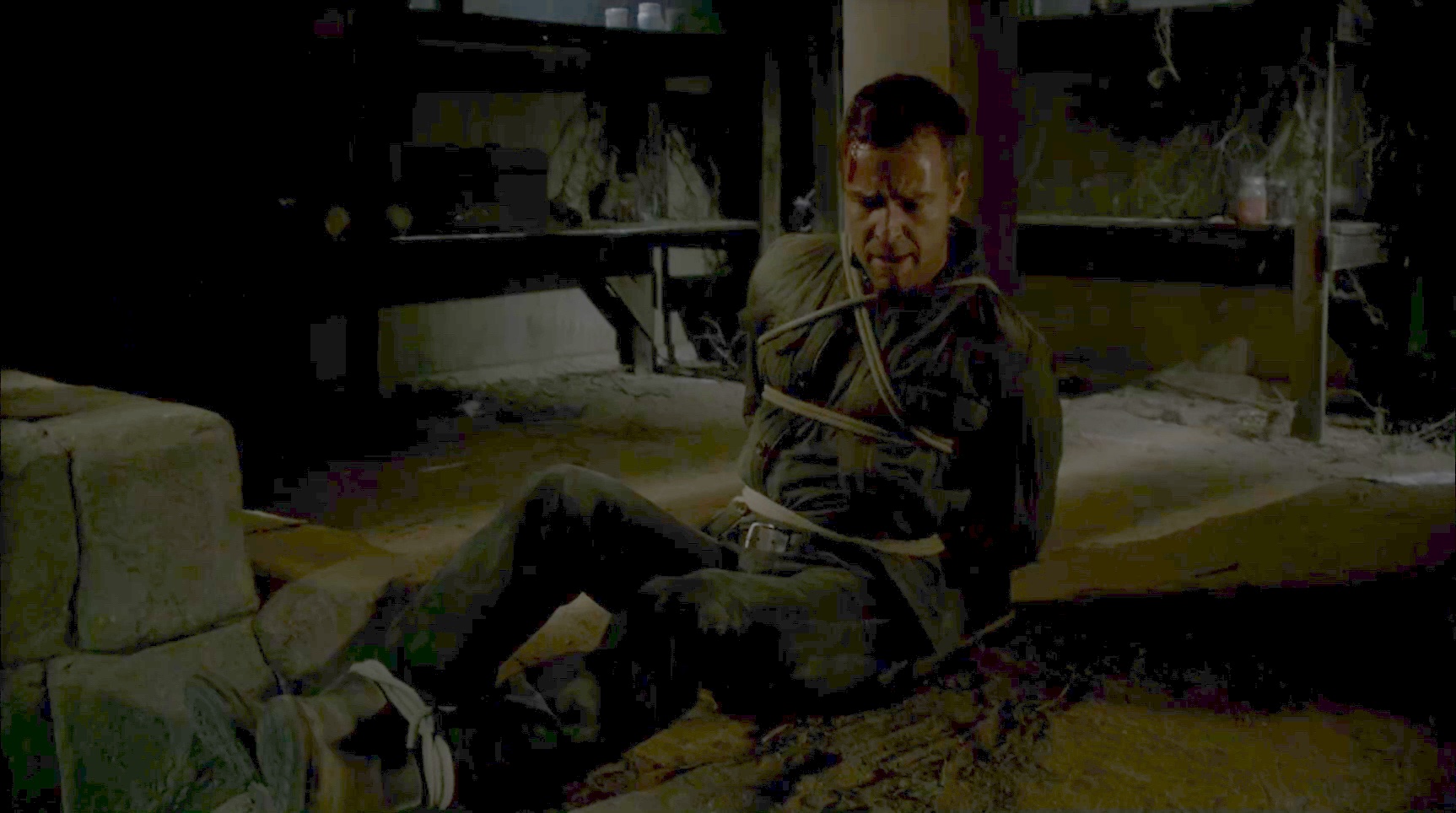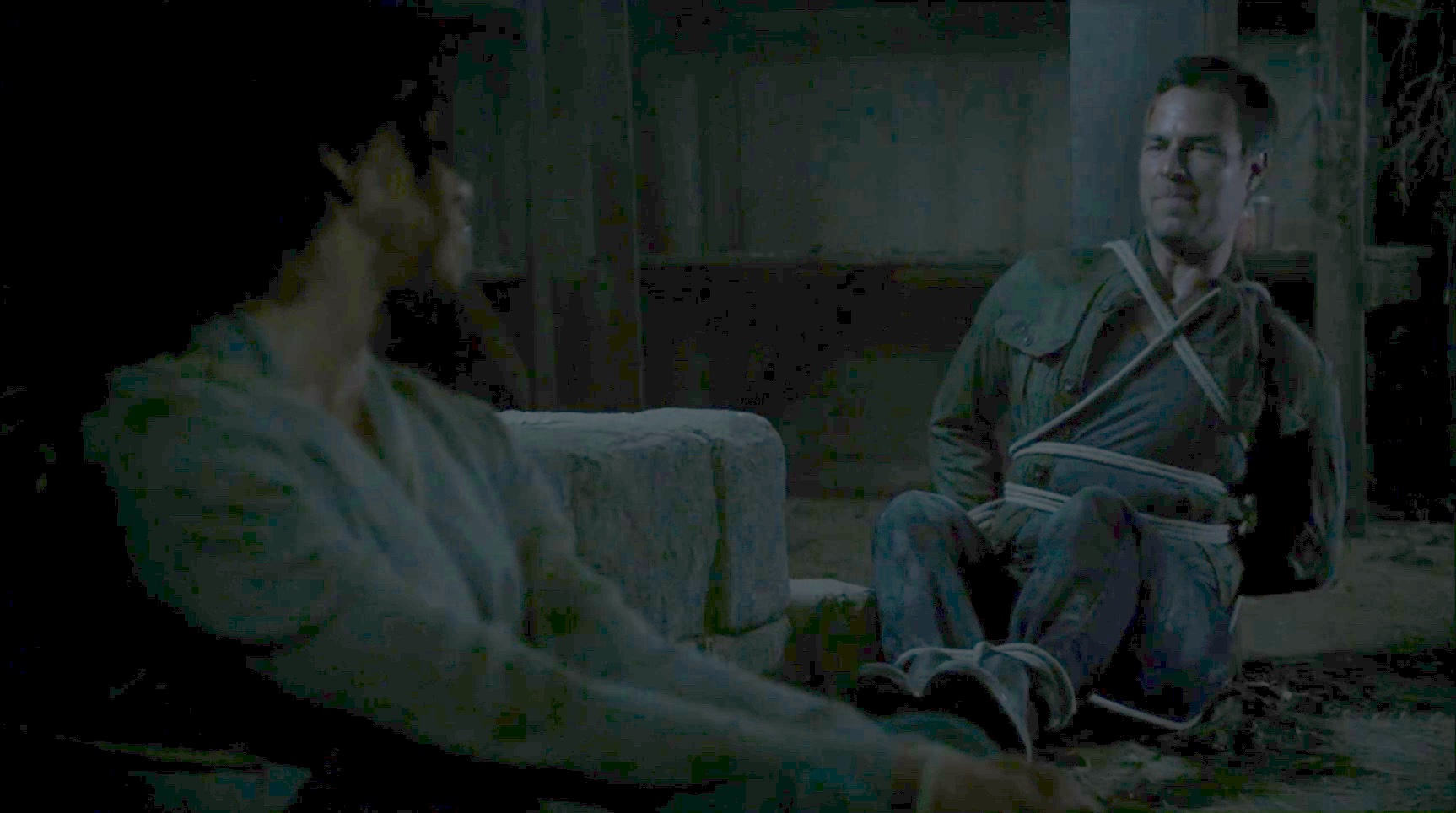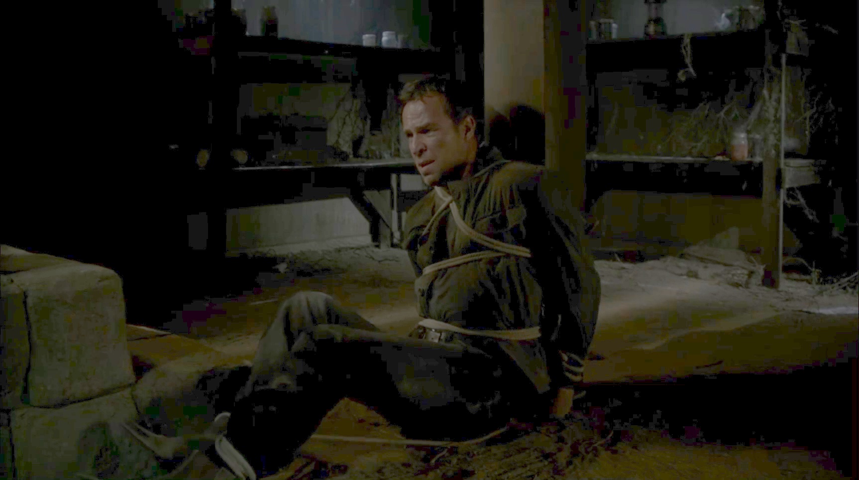 Chris Argent (Bourne) and Noah Stilinski (Ashby) find themselves tied up in the root cellar.