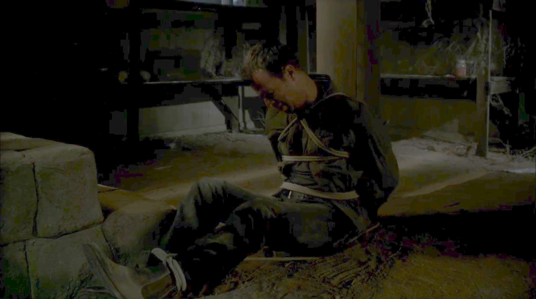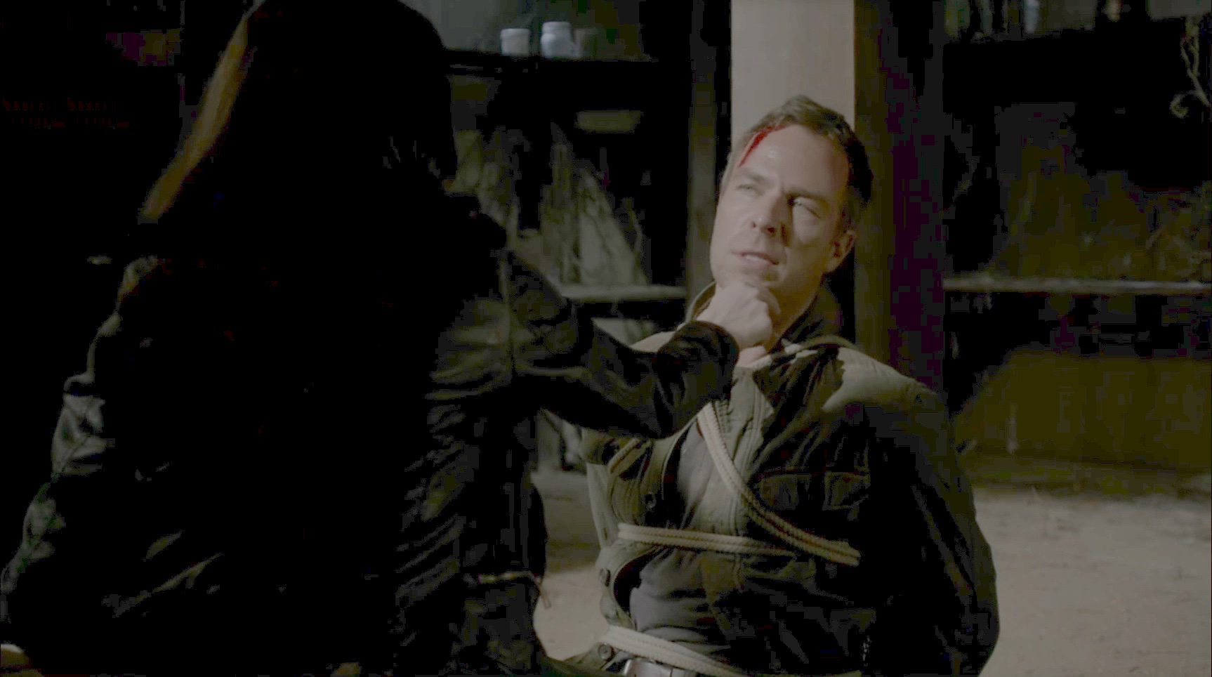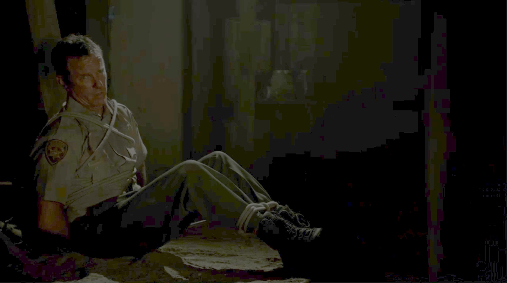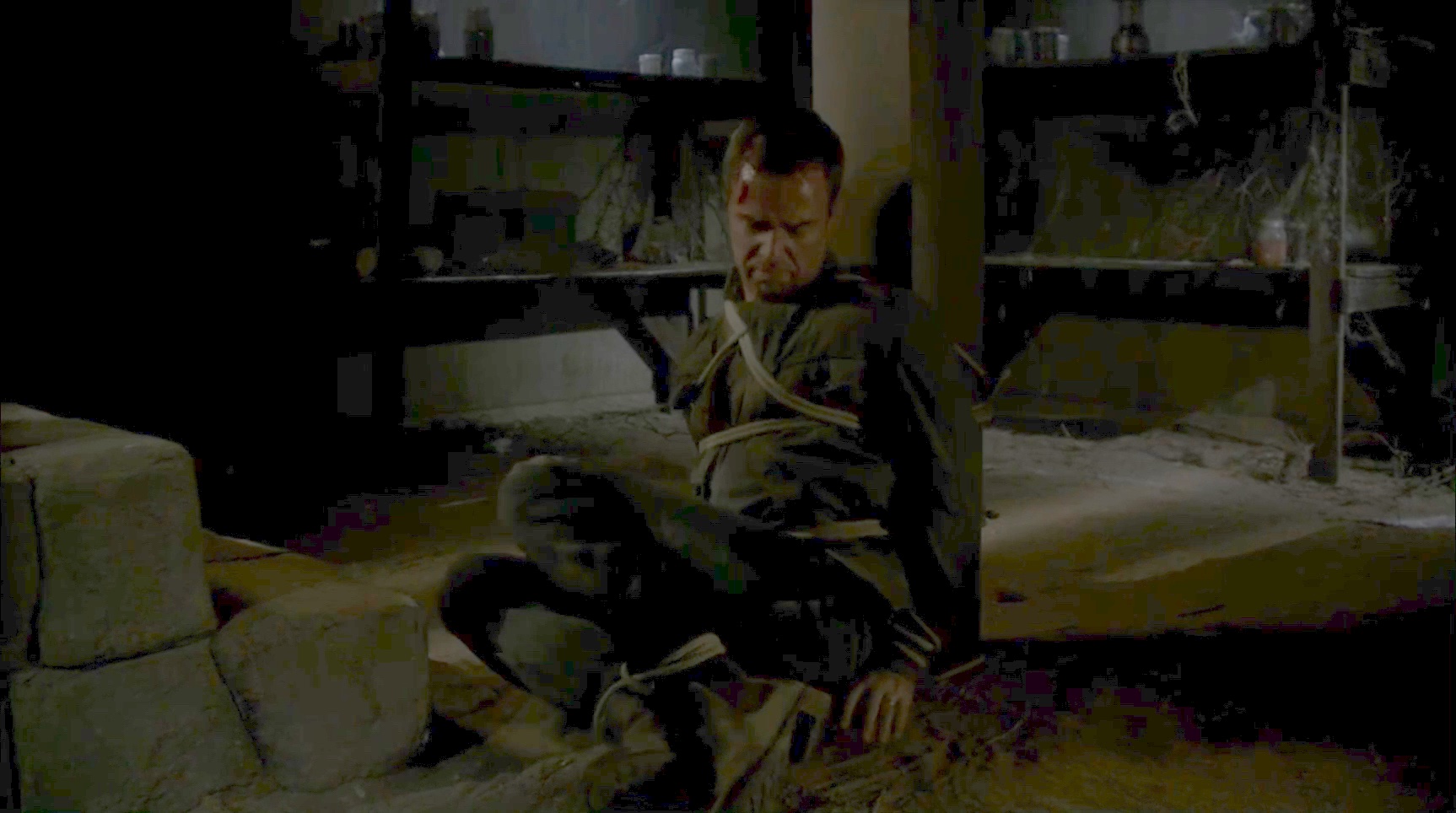 Chris Argent (Bourne) and Noah Stilinski (Ashby) find themselves tied up in the root cellar.